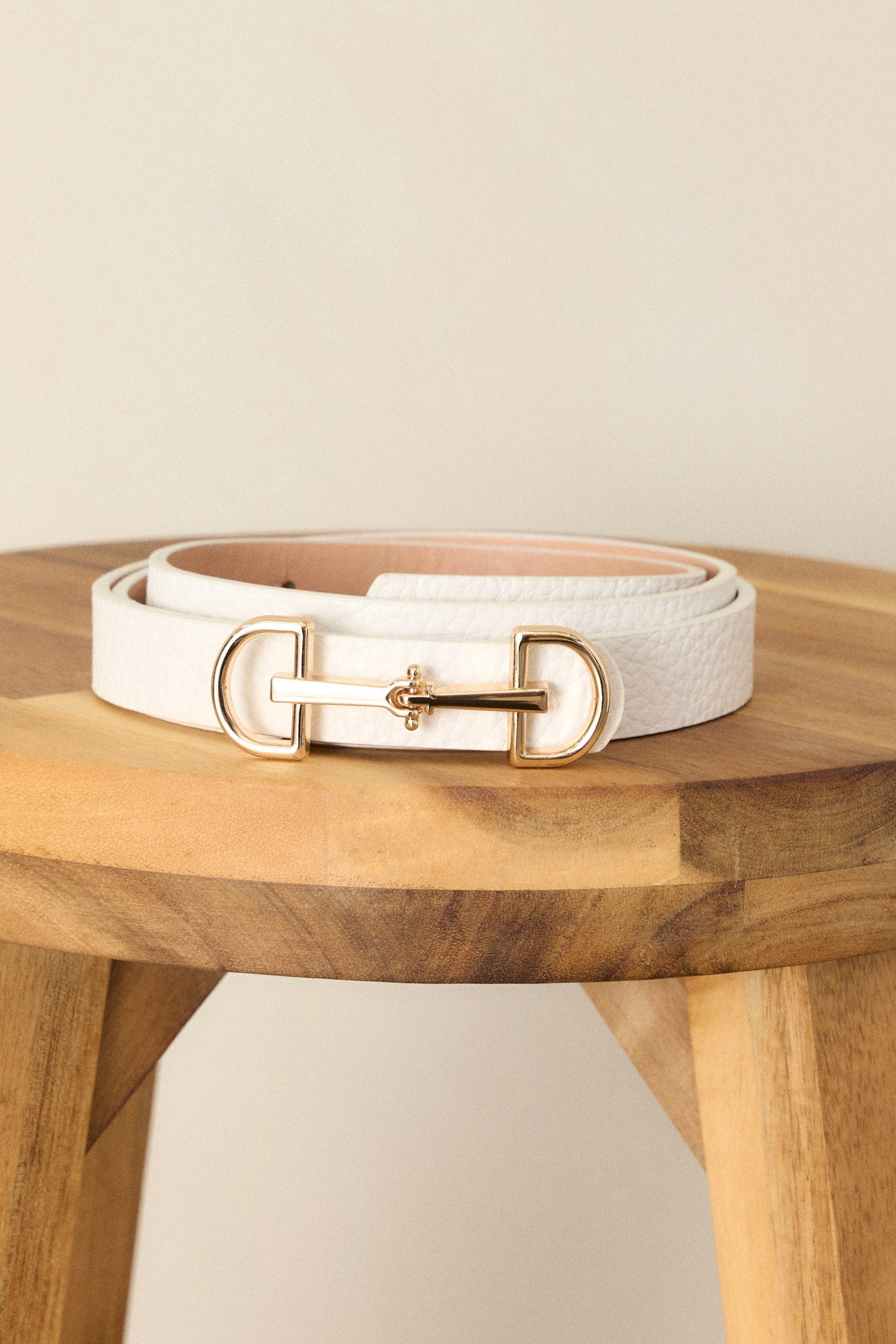 Add a pop of color and texture to any outfit with our Endless Charm White Textured Belt. Made with high-quality materials, this belt is both stylish and durable. Its versatile design allows for endless styling options, making it a must-have accessory for any fashion-savvy individual. Elevate your look and add a touch of charm to your wardrobe with this white textured belt. This white belt features gold hardware, an anchor closure, and a textured design.