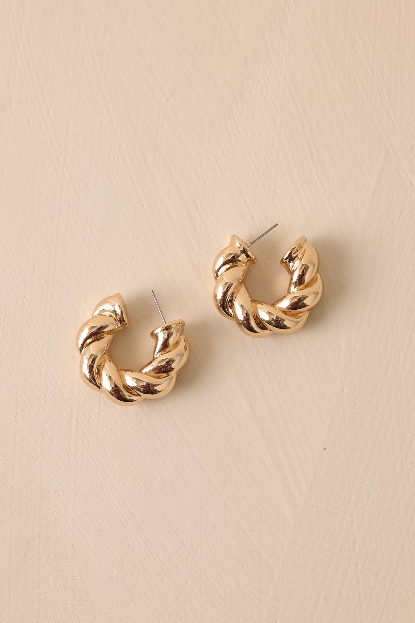 Shine on with our Eternal Arcs Gold Twisted Hoop Earrings! These earrings twist and turn in perfect harmony, adding a touch of unique style to any outfit. Show off your playful side with these hoops that will never go out of style. Eternal style, eternal fun! These gold earrings feature an incomplete hoop design, a twisted style, and secure post backings.
