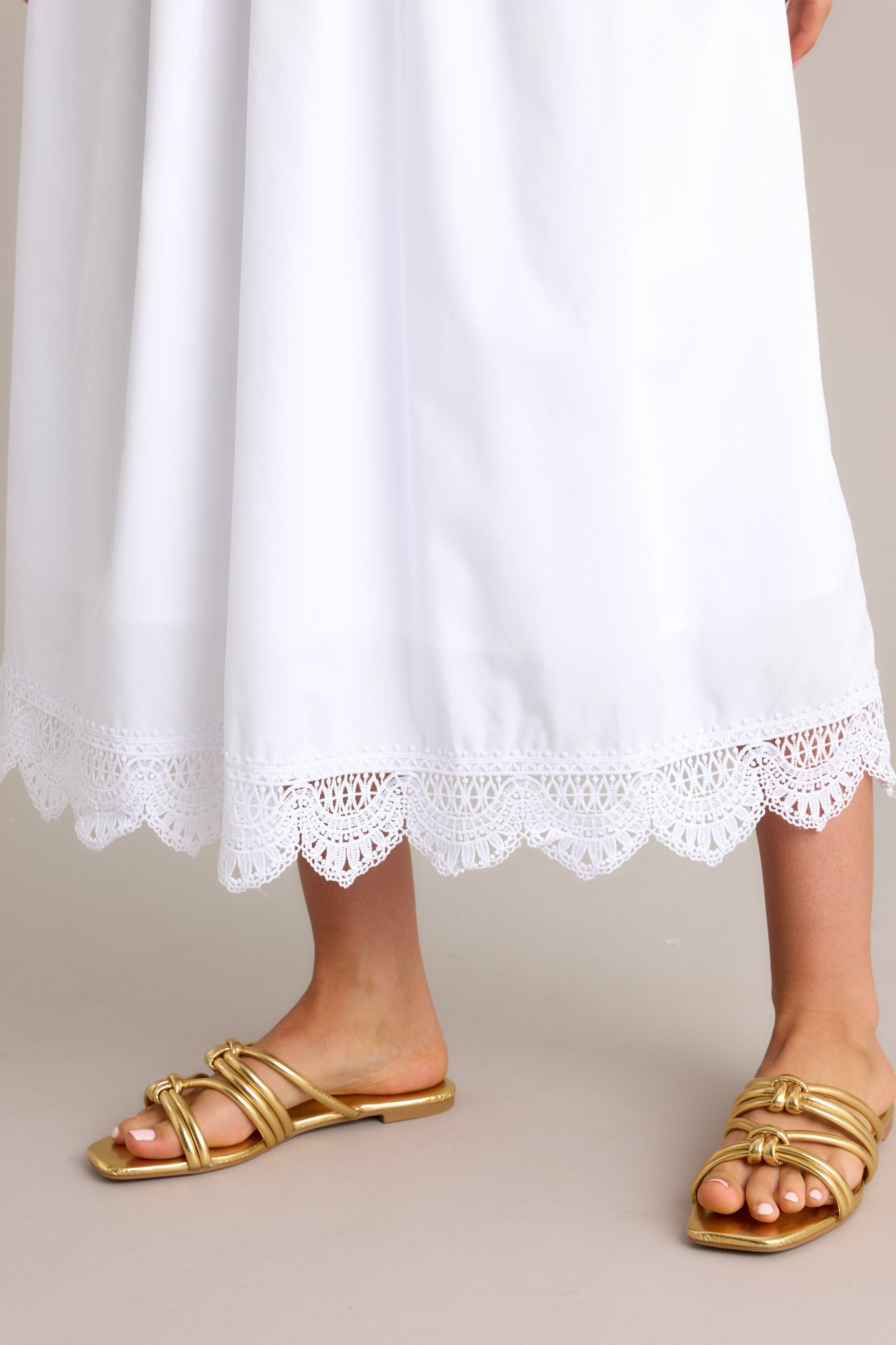 Float into any occasion in our Ethereal Elegance White Maxi Dress. This stunning dress features a flowing silhouette that will make you feel like a goddess. With its ethereal white color, you'll be the epitome of elegance. Perfect for special occasions, parties, and more! This white maxi dress features a v-neckline, thin adjustable straps, a lace bust, a fully smocked waist & back, a flowing silhouette, and a lace hemline.