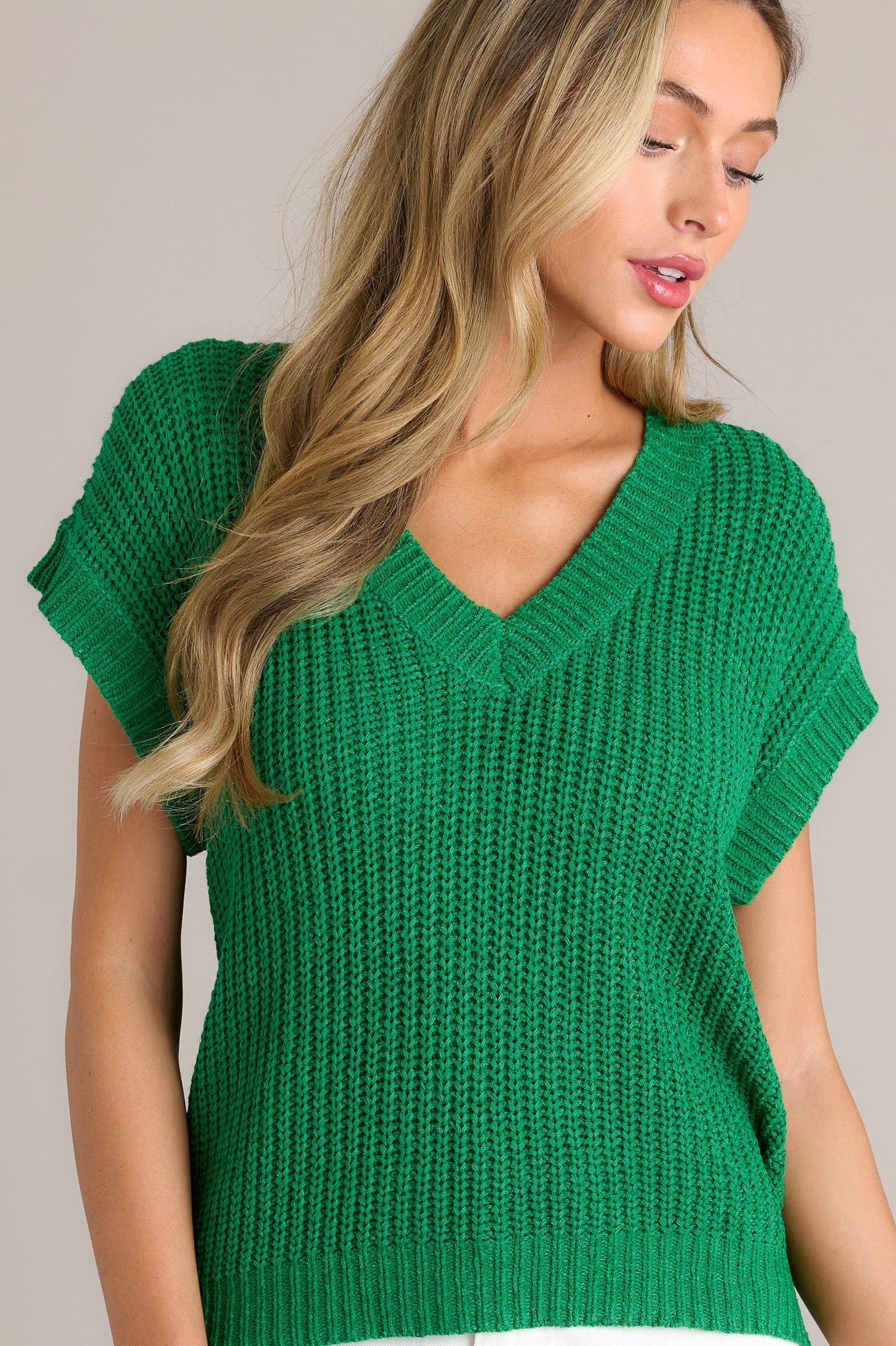 Experience a touch of magic with our Ethereal Enchantment Kelly Green Sweater Top! Made from soft, cozy fabric, this top will keep you comfortable while adding a pop of color to your outfit. Perfect for any occasion, this top will have you feeling free-spirited and enchanted. This kelly green sweater top features a ribbed v-neckline, a soft thick knit material, a ribbed hemline, and short sleeves.