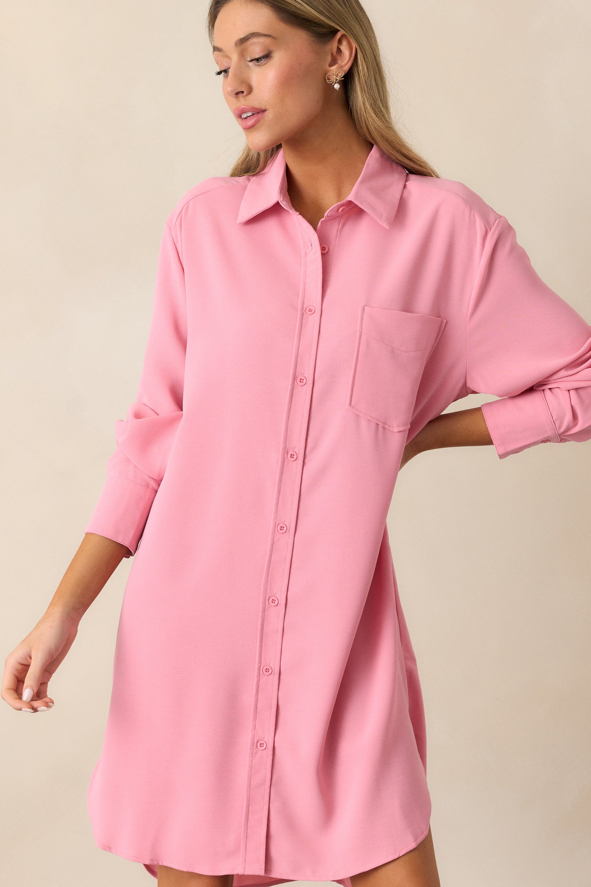 Finding Comfort Pink Button Front Mini Shirt Dress