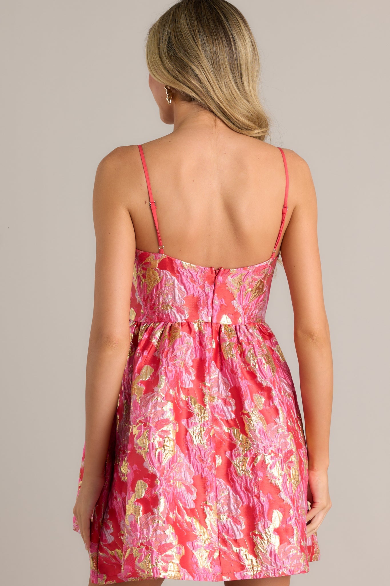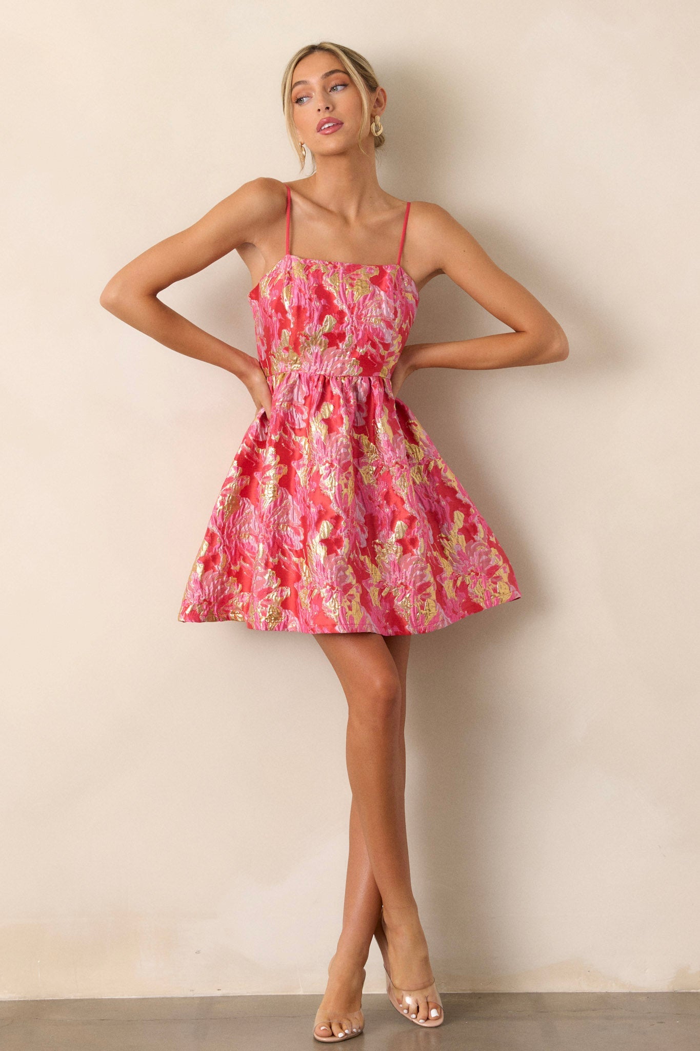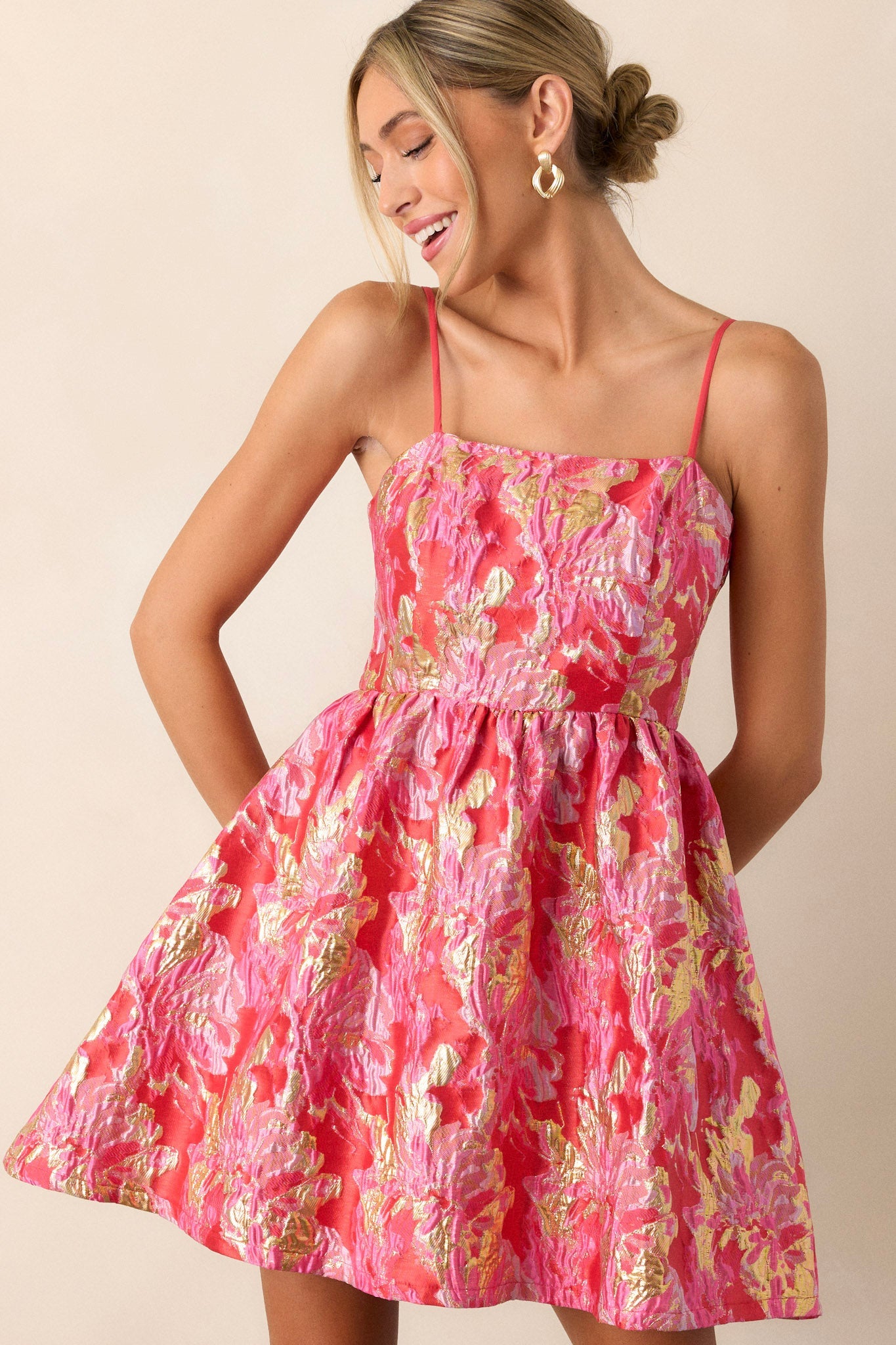 Dress to impress in our Fluorescent Dreams Pink Jacquard Mini Dress! Perfect for any occasion, stand out and make a statement with this unique and fun dress! This eye-catching dress features a vibrant pink color and a playful skater silhouette that will have you twirling all night long. This pink jacquard dress features adjustable straps, a floral jacquard fabric, and a functional zipper on the back.
