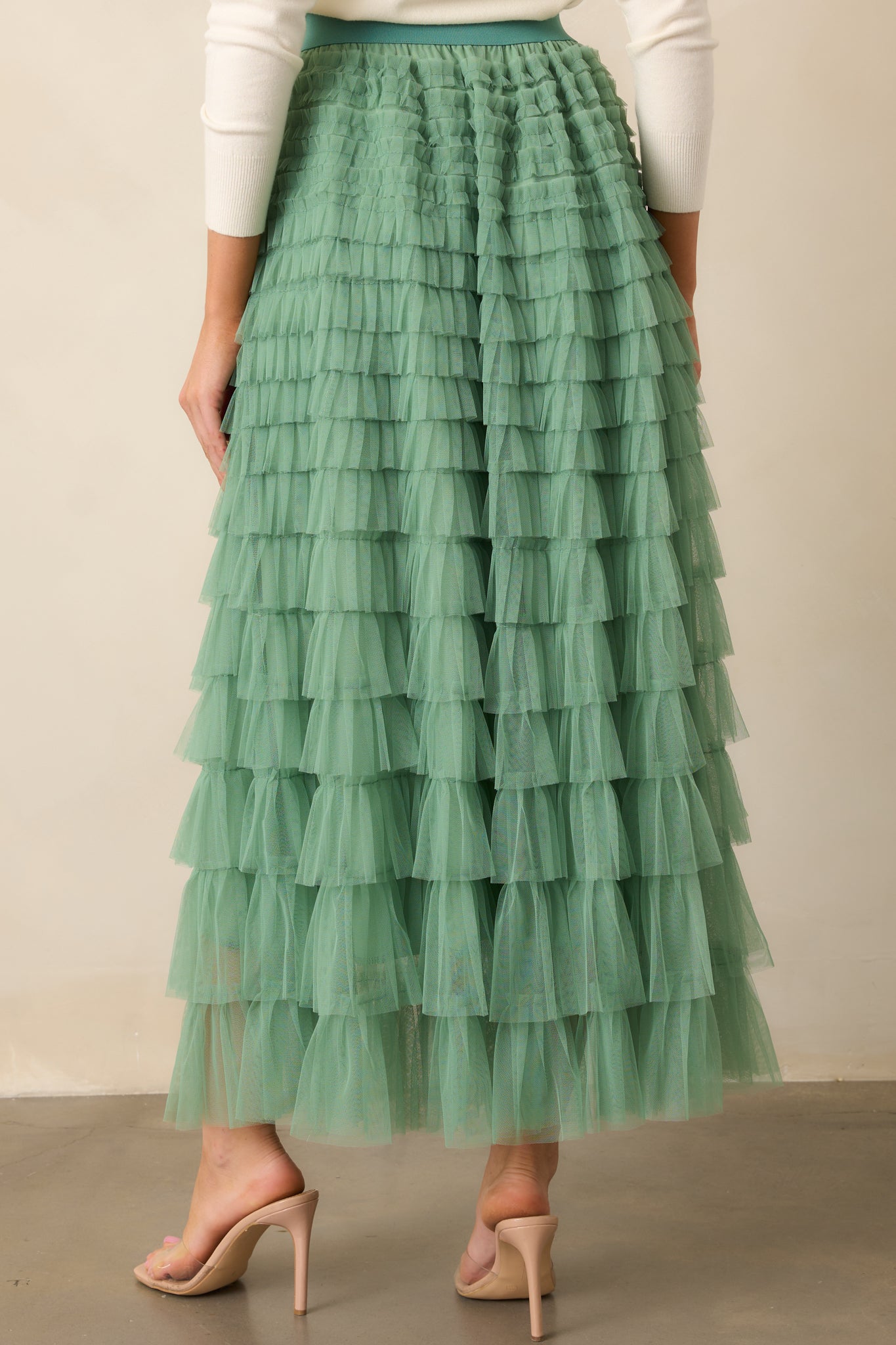 Garden Gathering Sage Tiered Ruffle Tulle Maxi Skirt