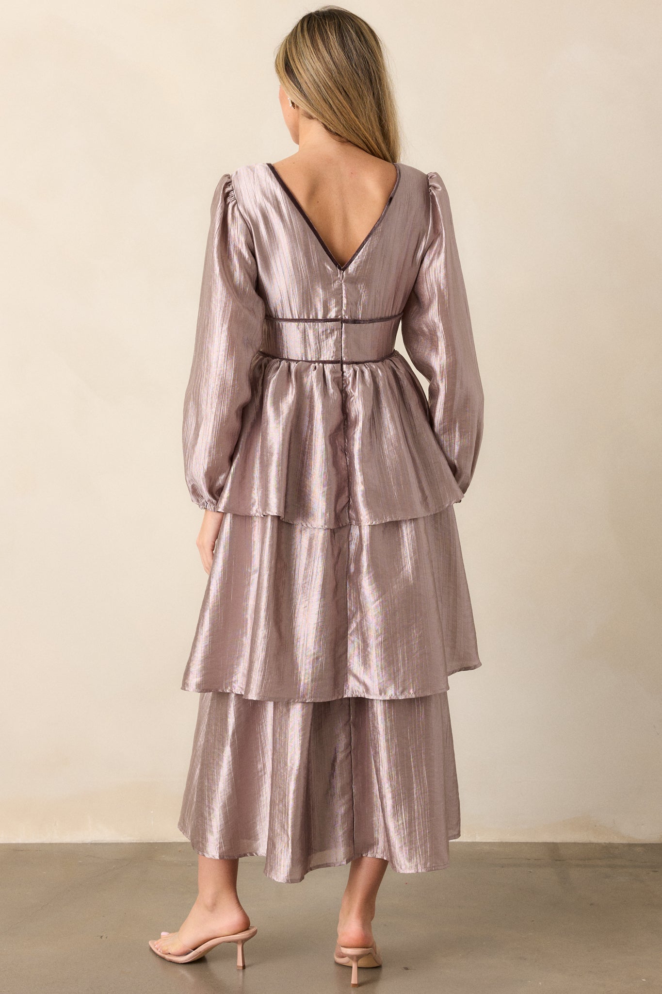 Glamorous Gaze Metallic Grey Tiered Midi Dress