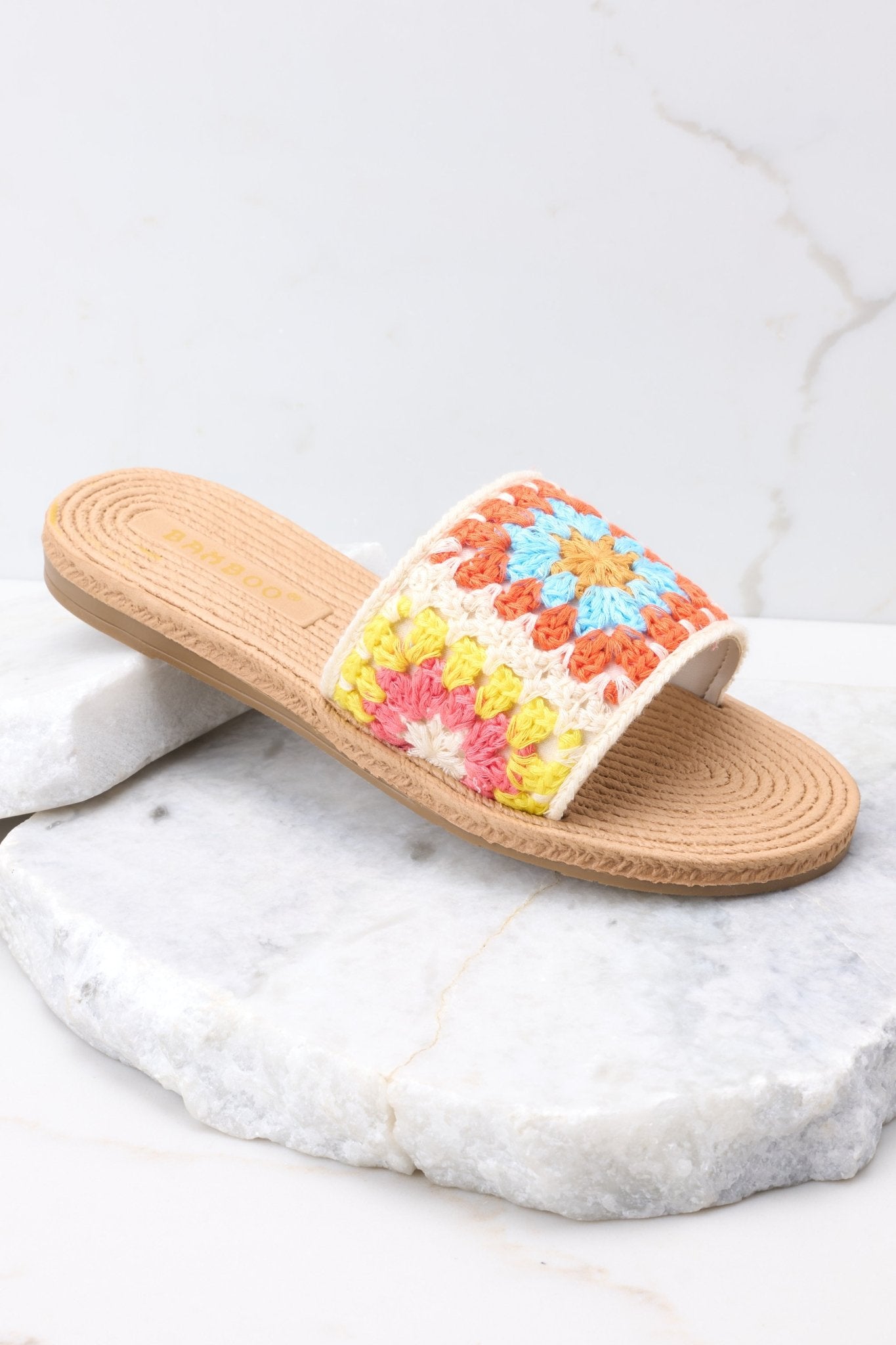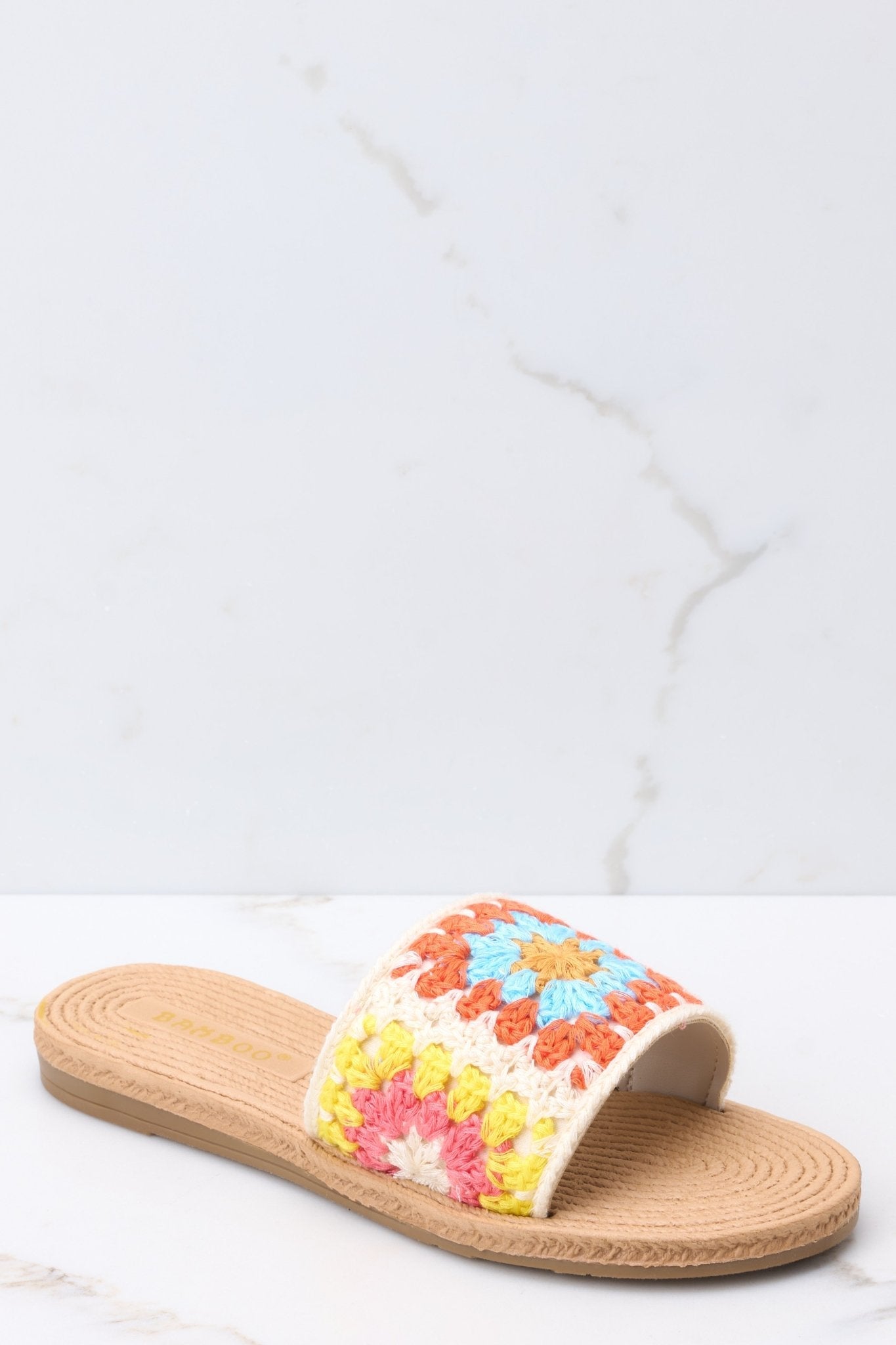 Apparently, a Goddess Above loves me, because these divinely designed beige slide sandals are beautiful to behold! I wish I could wear these crochet flats everywhere! These sandals feature a crochet detail over the foot and a slip-on style. Non-skid sole • Man-made materials • Imported. • These sandals fit true to size.