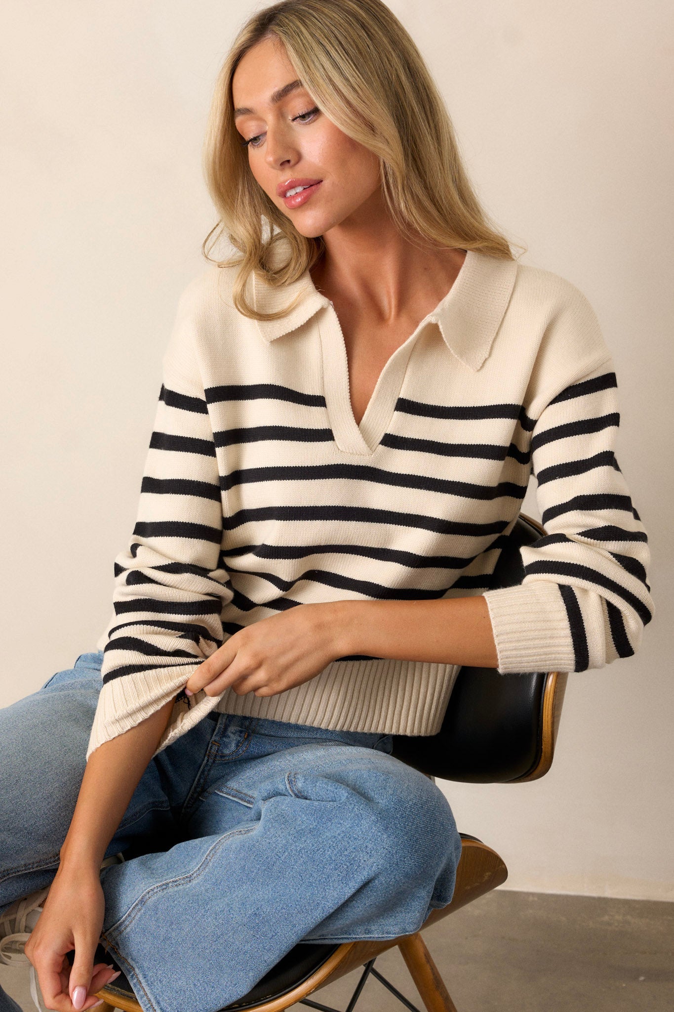 Got A Feeling Beige & Black Stripe Collared Sweater