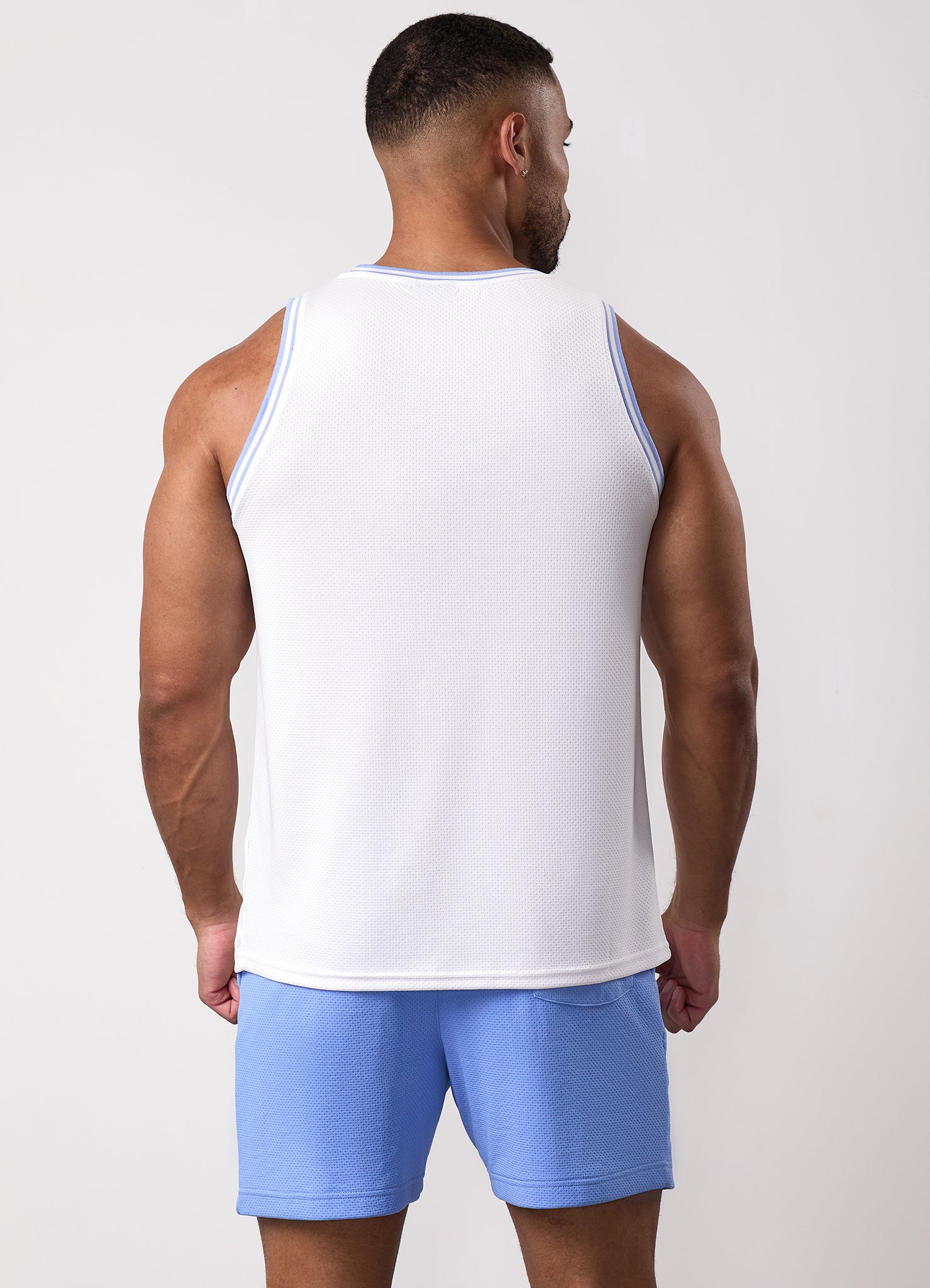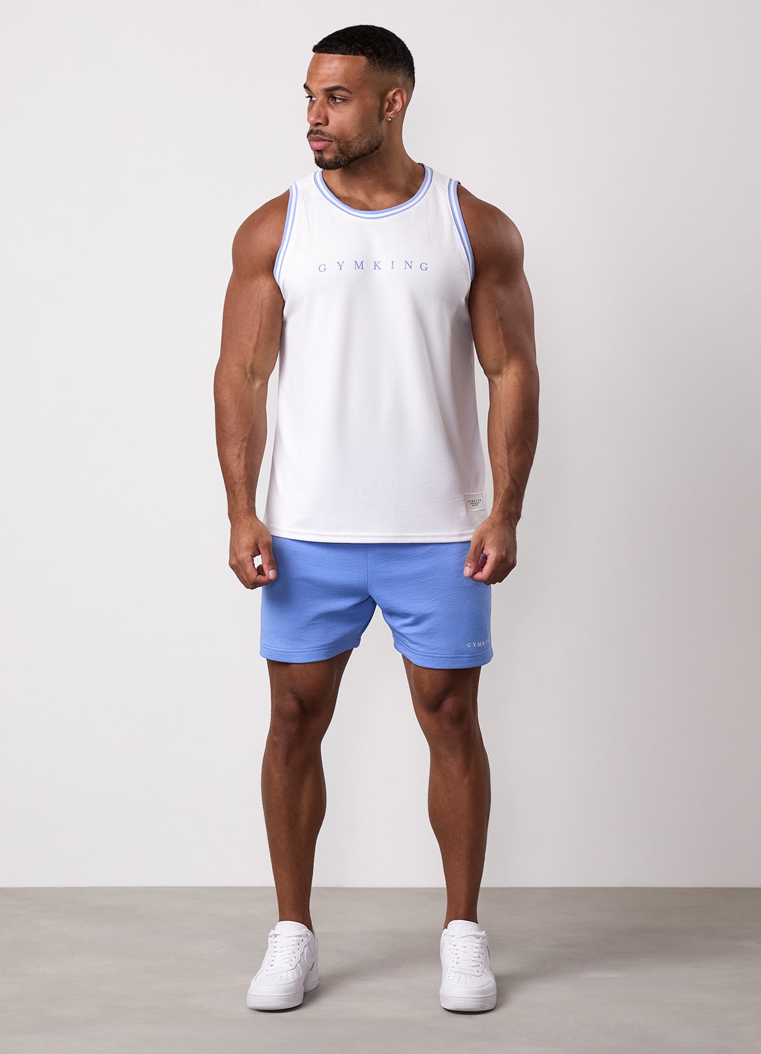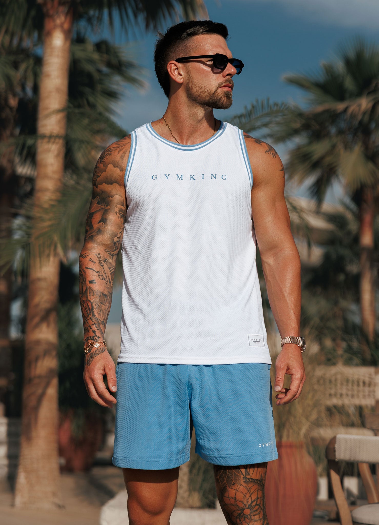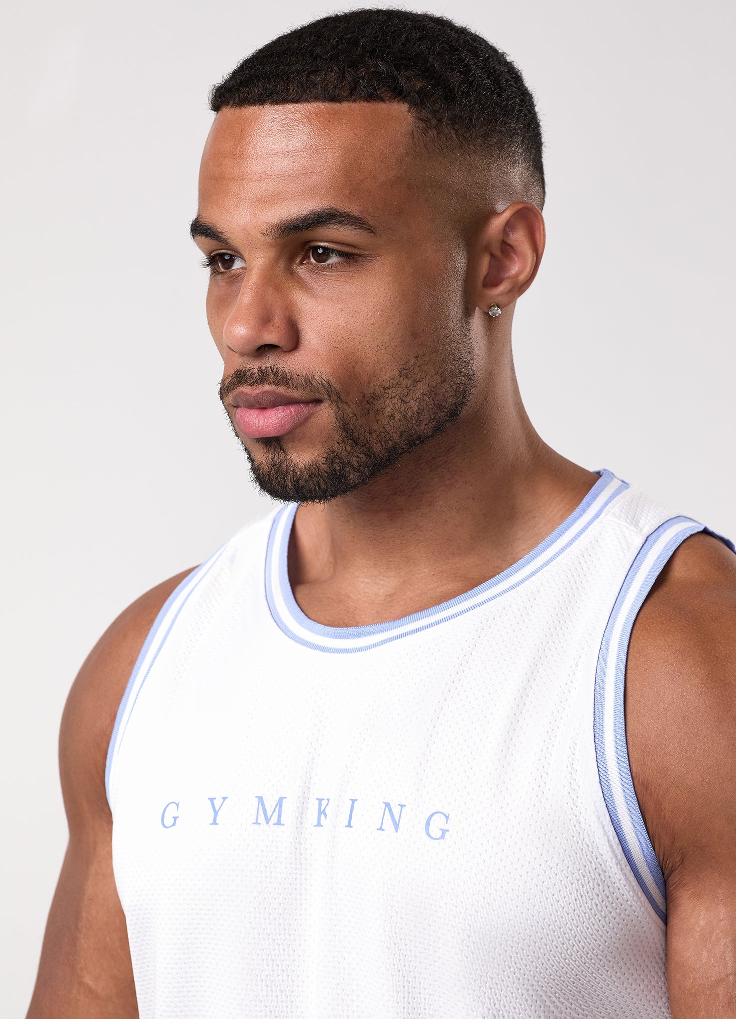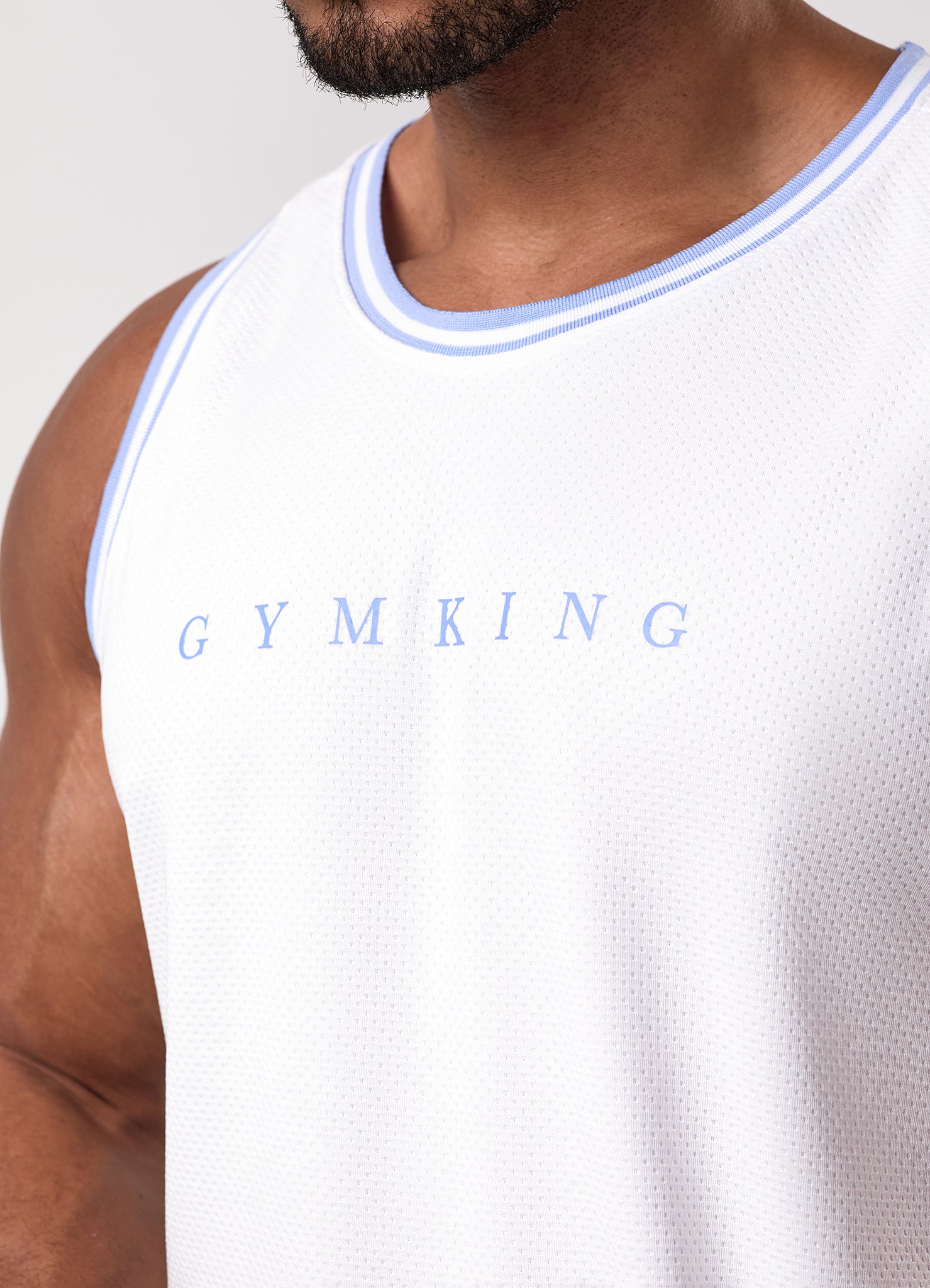 Gym King Brooklyn Mesh Vest - White/Provence Blue