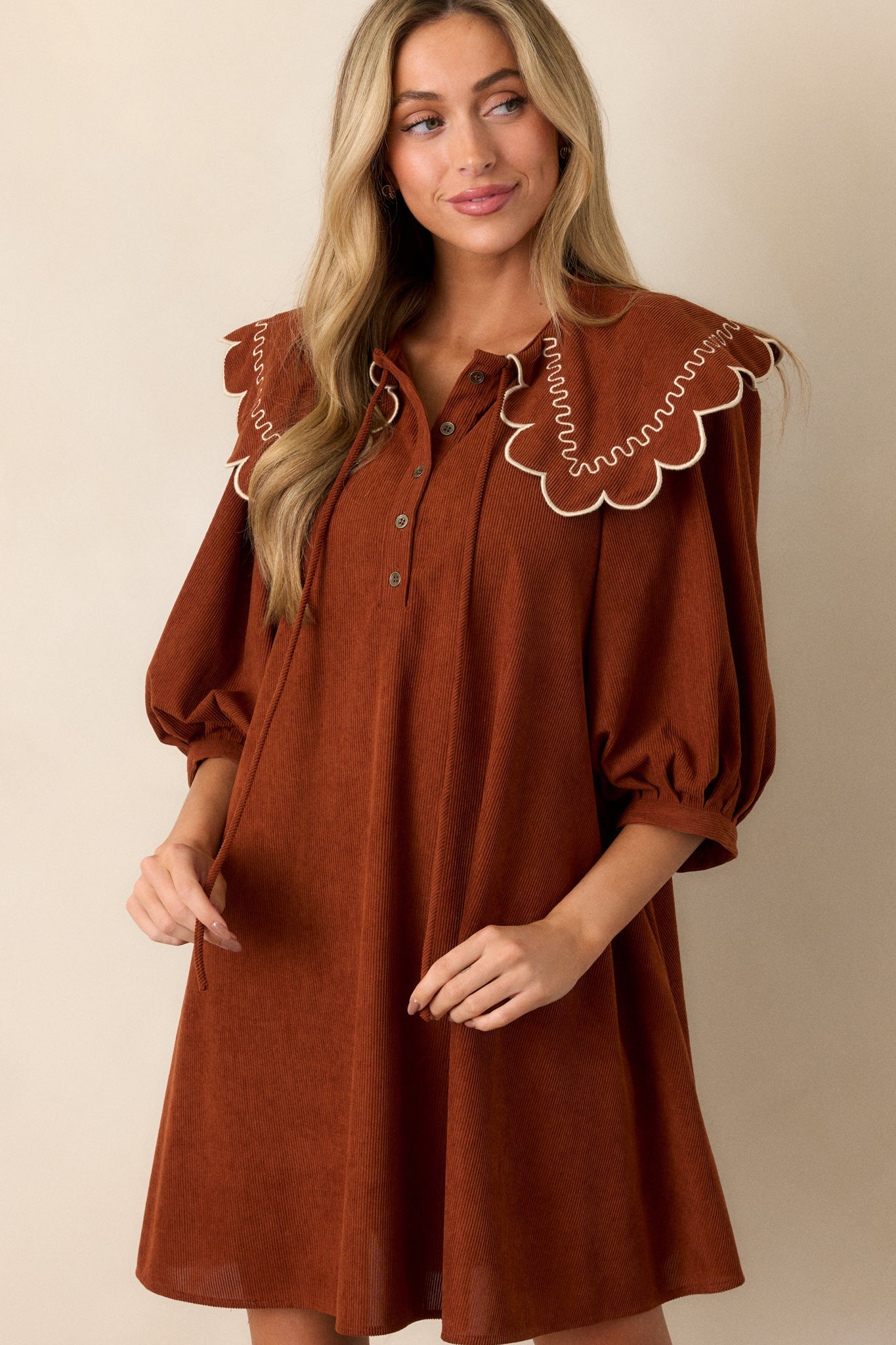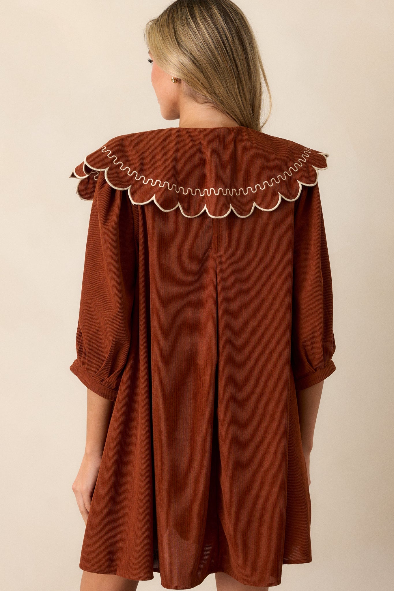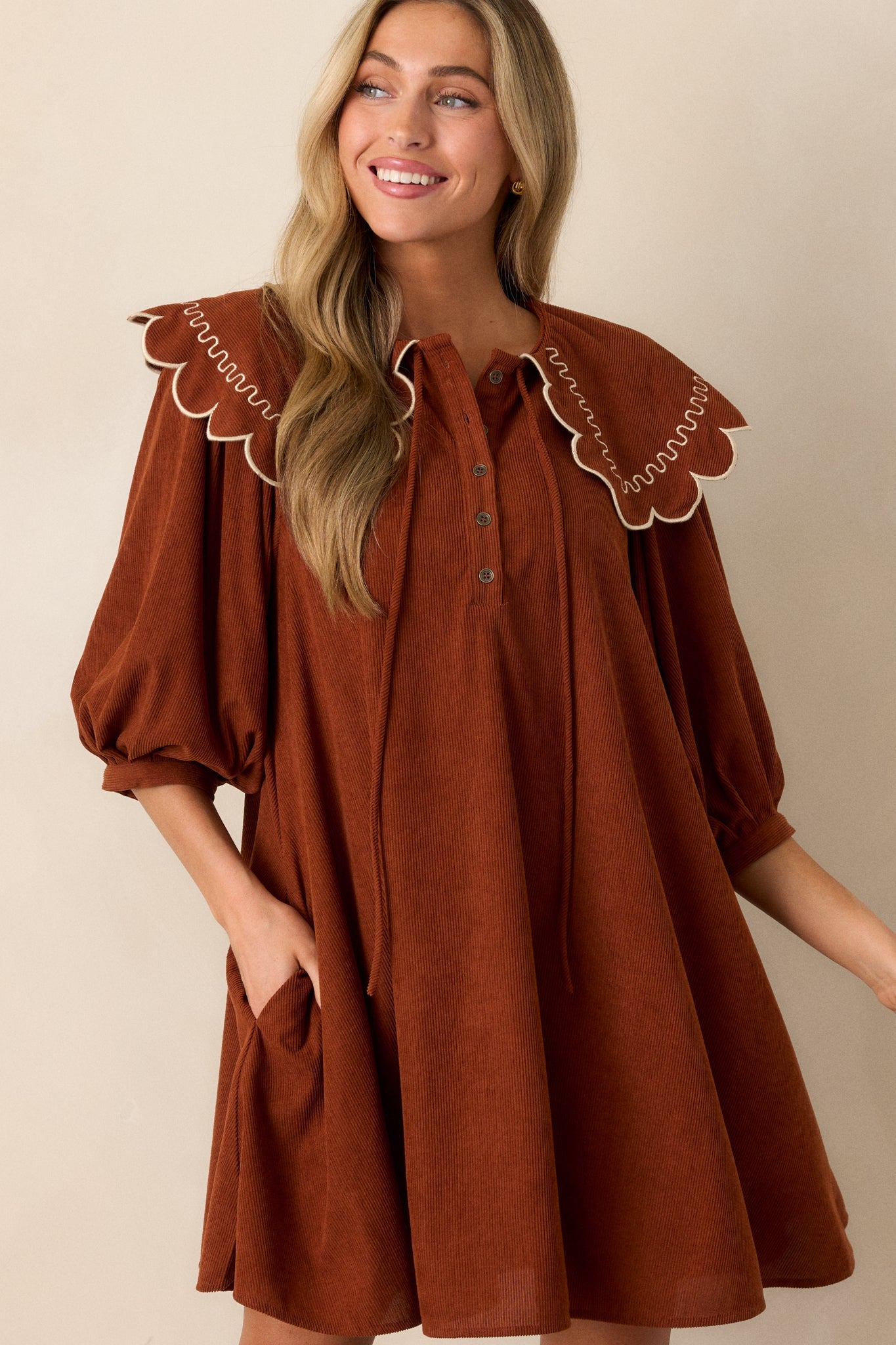 Harvest Whispers Brown Corduroy Long Sleeve Mini Dress