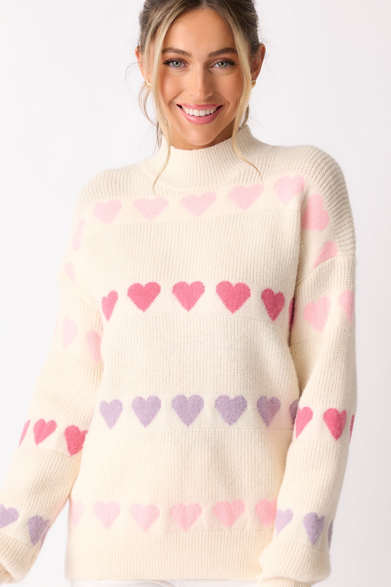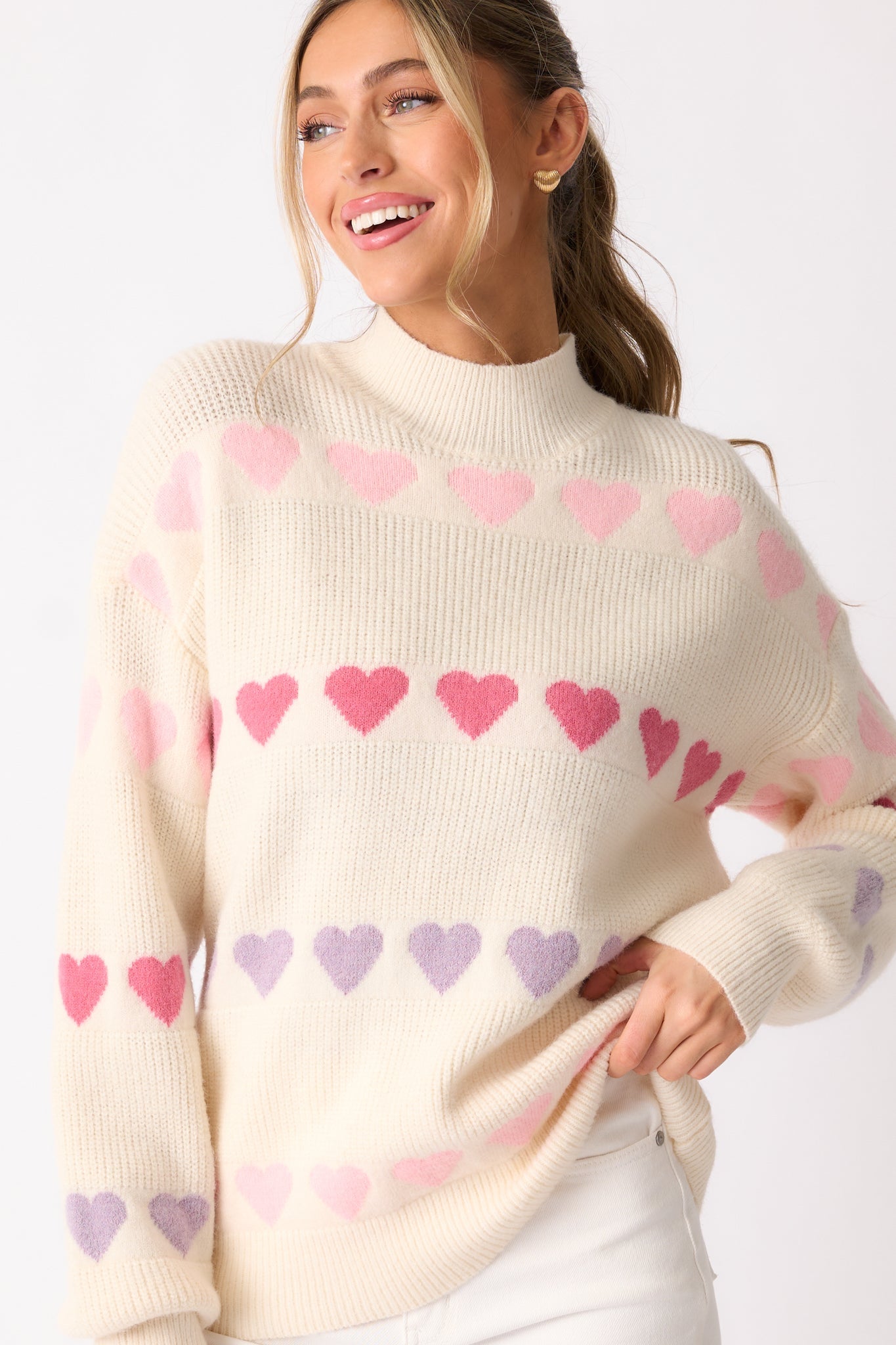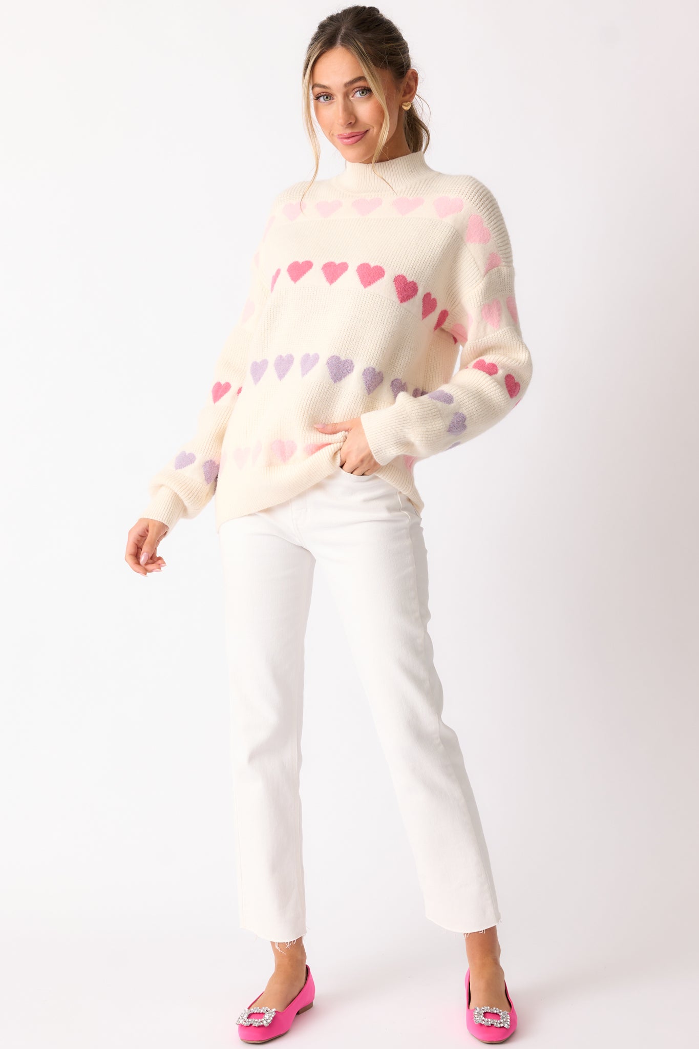 Hearts In Your Eyes Ivory Mock Neck Sweater