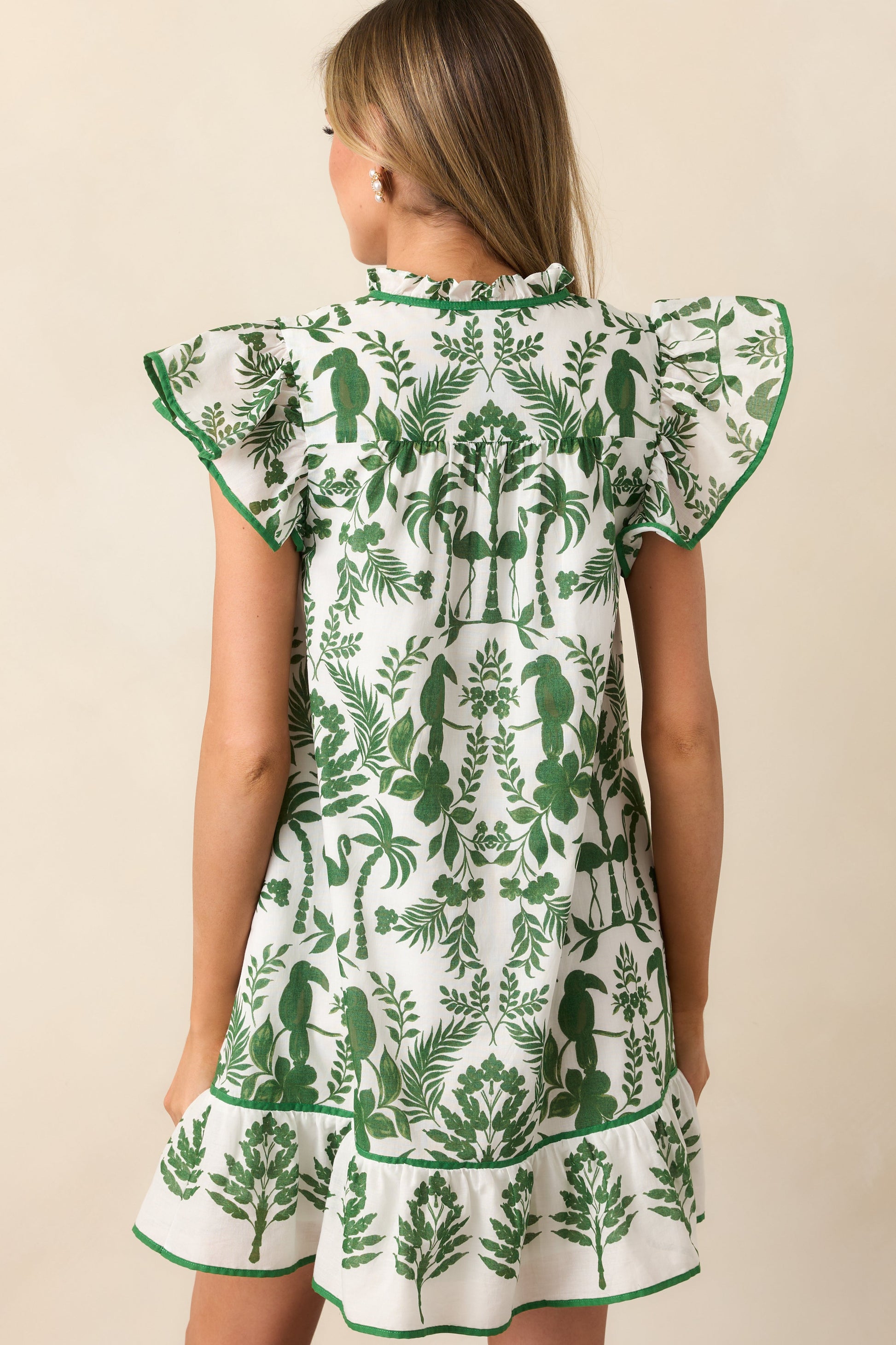 Hopping Islands Green Tropical Print Flutter Sleeve Mini Dress
