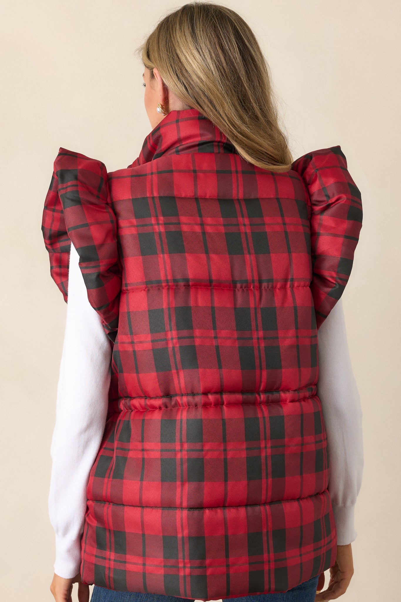 I Found You Red Plaid Flutter Sleeve Puffer Vest
