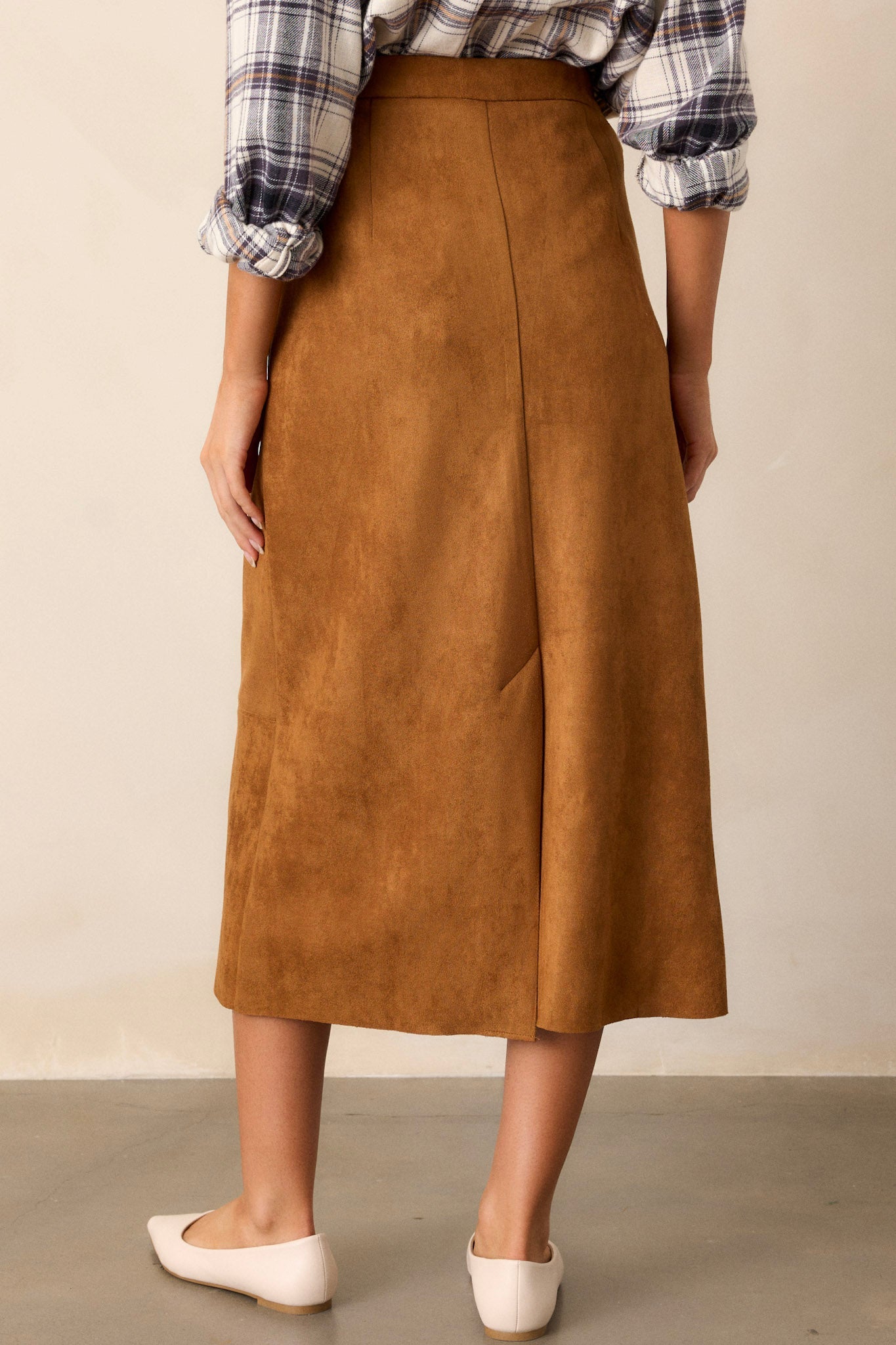 I'm Telling You Caramel Brown Faux Suede Midi Skirt