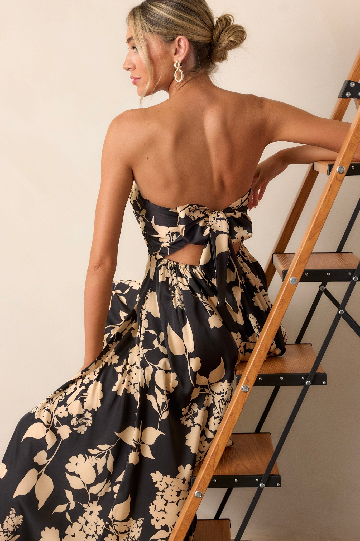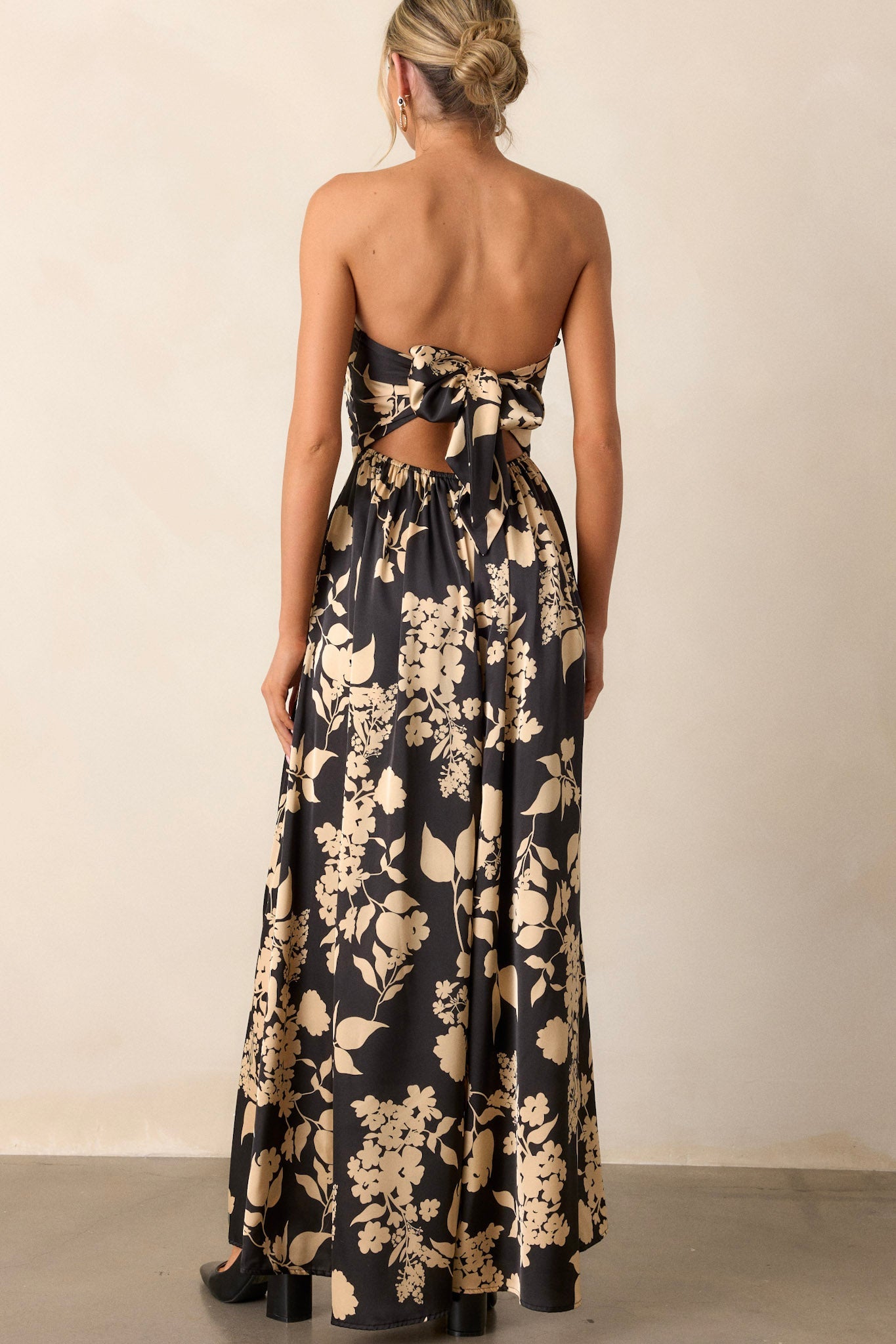 In The Dark Black Floral Strapless Wide Leg Jumpsuit