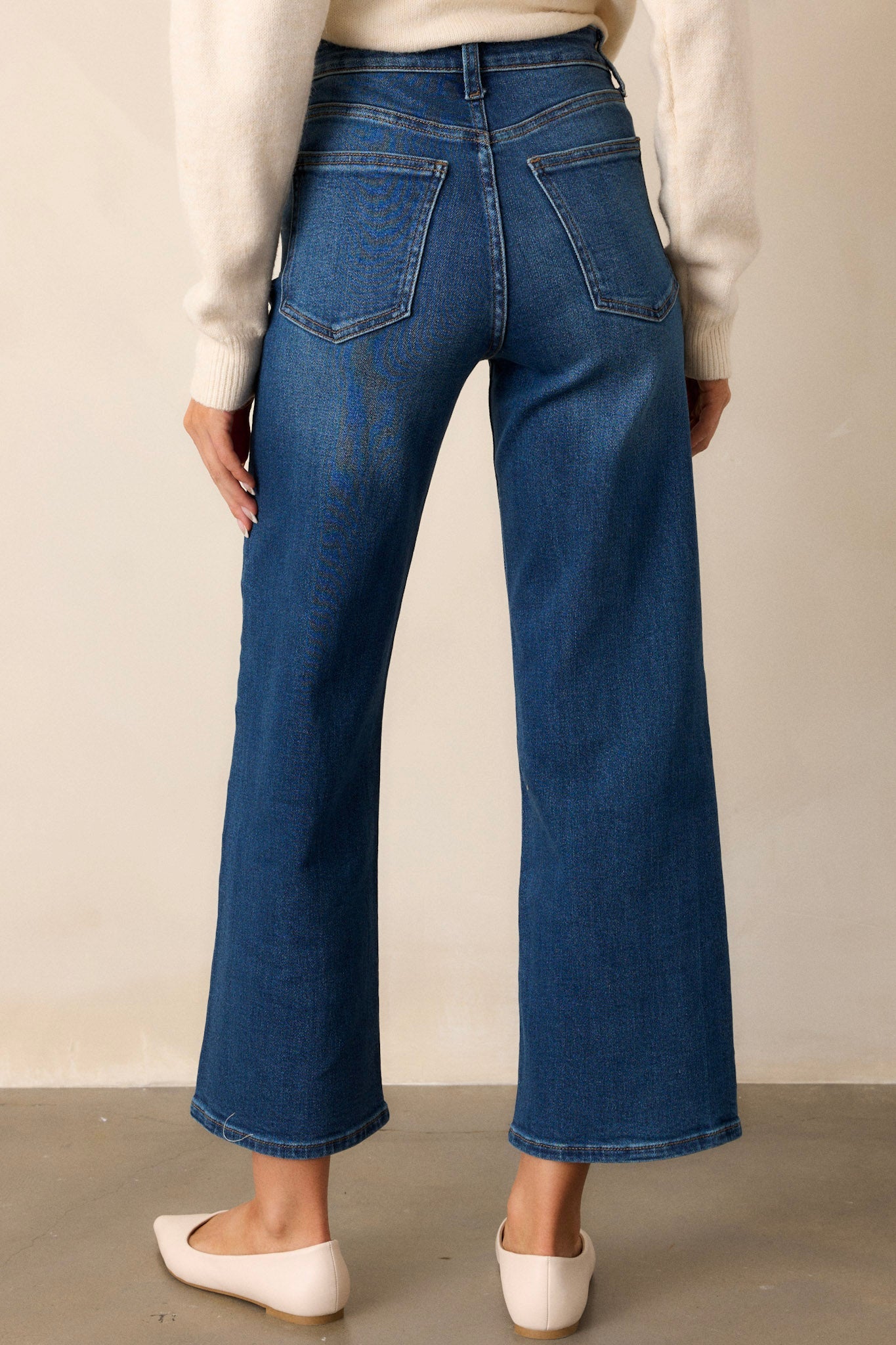 Reach new heights of style with our Into The Clouds Dark Wash Cropped Wide Leg Jeans. These trendy jeans are perfect for any fashion-forward individual looking to make a statement. Breathable fabric and a flattering fit make these jeans a must-have for any wardrobe. Don't be afraid to stand out with these unique and playful jeans! These dark wash jeans feature a high waisted design, classic button & zipper closure, belt loops, functional front & back pockets, and a cropped length.