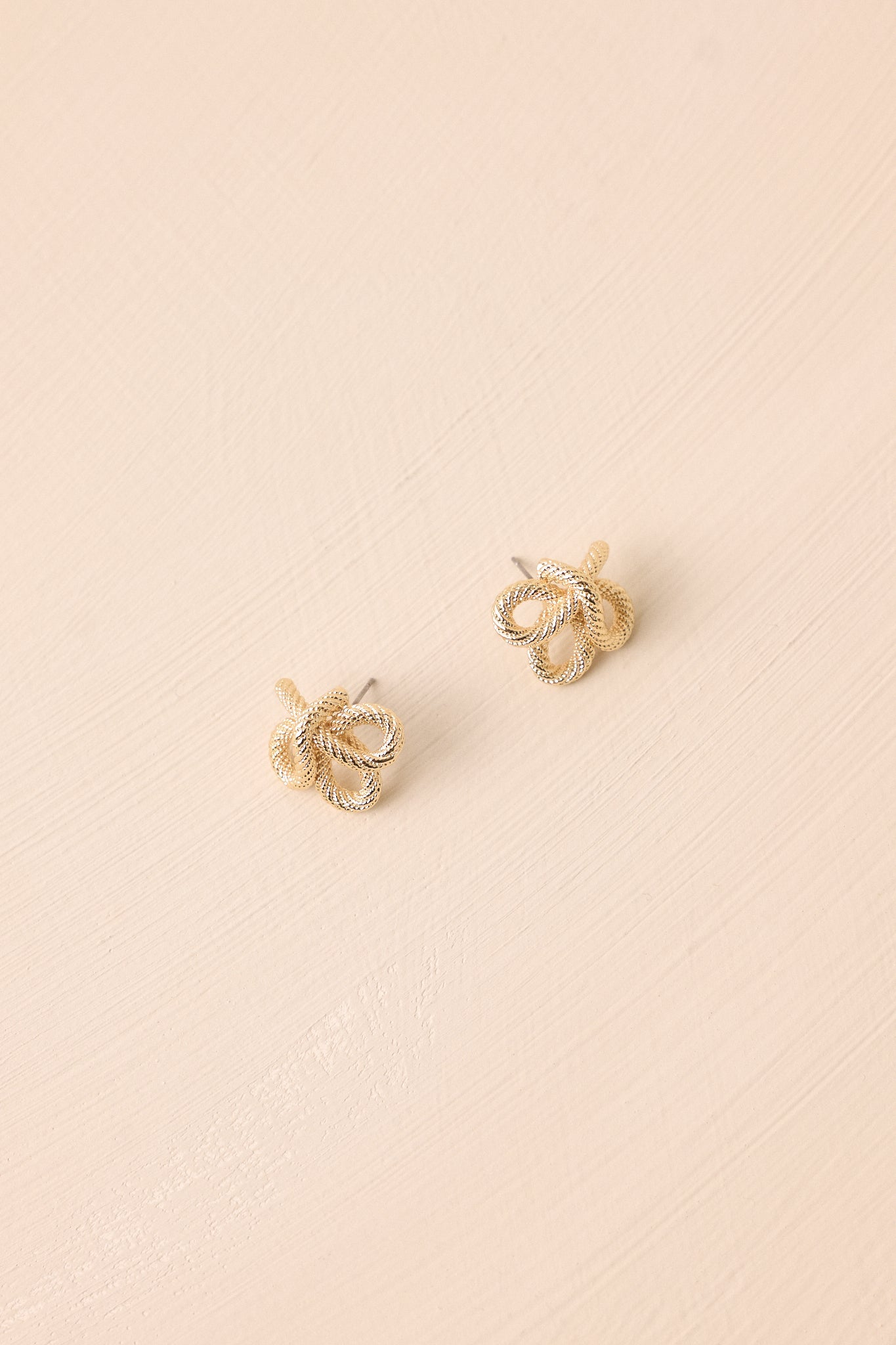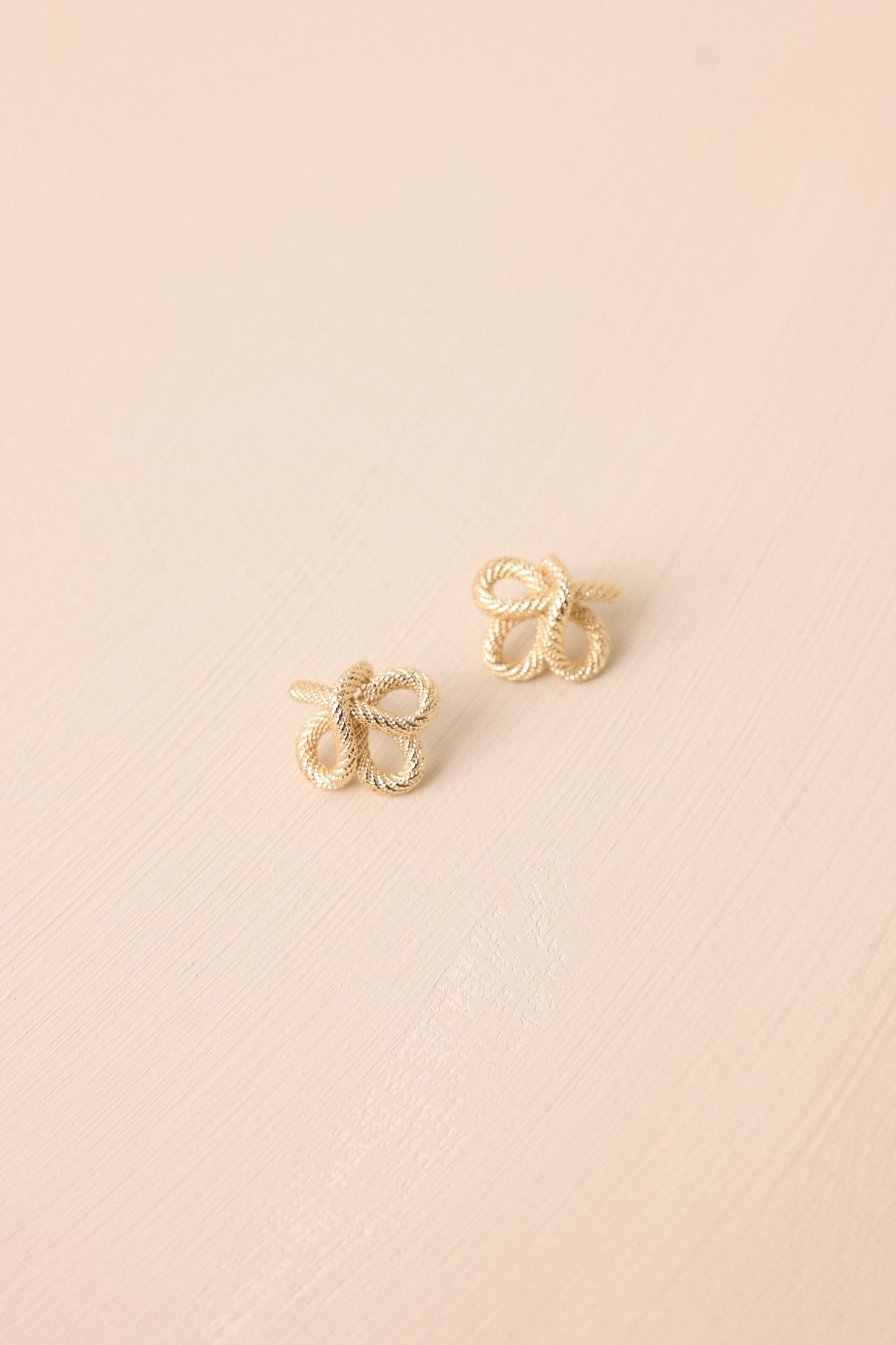 Elevate your everyday look with our Just Can't Wait Textured Gold Knot Earrings. These stylish earrings add texture and shine to any outfit. Perfect for any occasion, these earrings are a must-have for any jewelry collection. Make a statement without saying a word. These gold earrings feature a textured knot design, gold hardware and secure back postings.