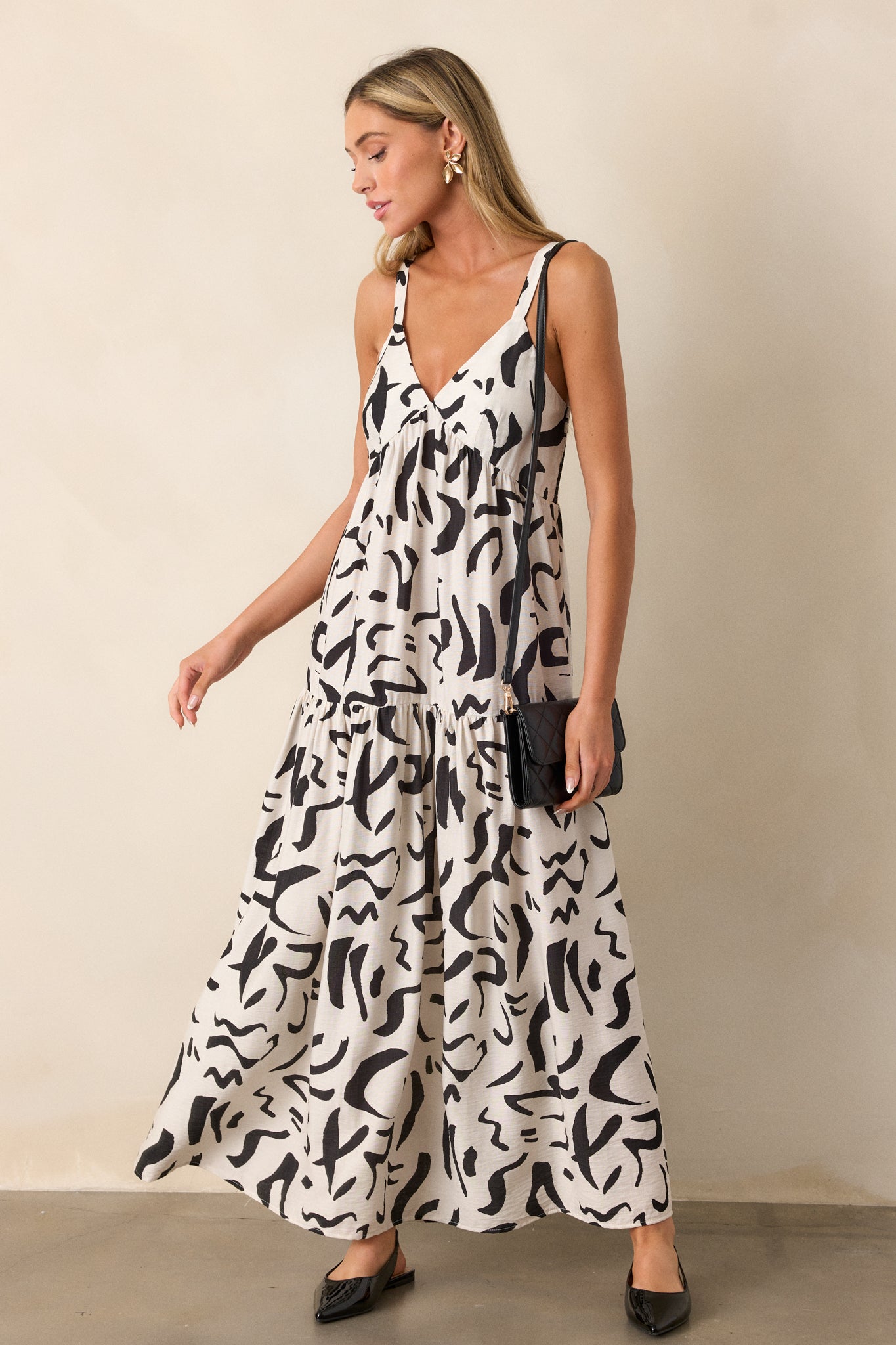 Unleash your inner fun-loving spirit with the Just Having Fun White Abstract Maxi Dress. This striking black and white dress combines a trendy abstract print with a flattering midi length for a bold and stylish look. This white dress features a black abstract design, a v-neckline, a smocked back, a tiered design, a maxi length and adjustable straps.