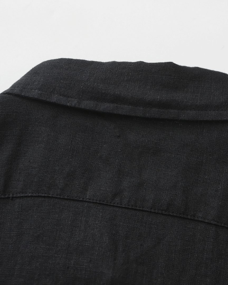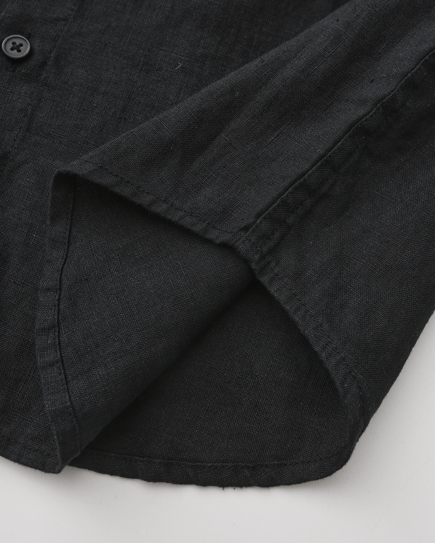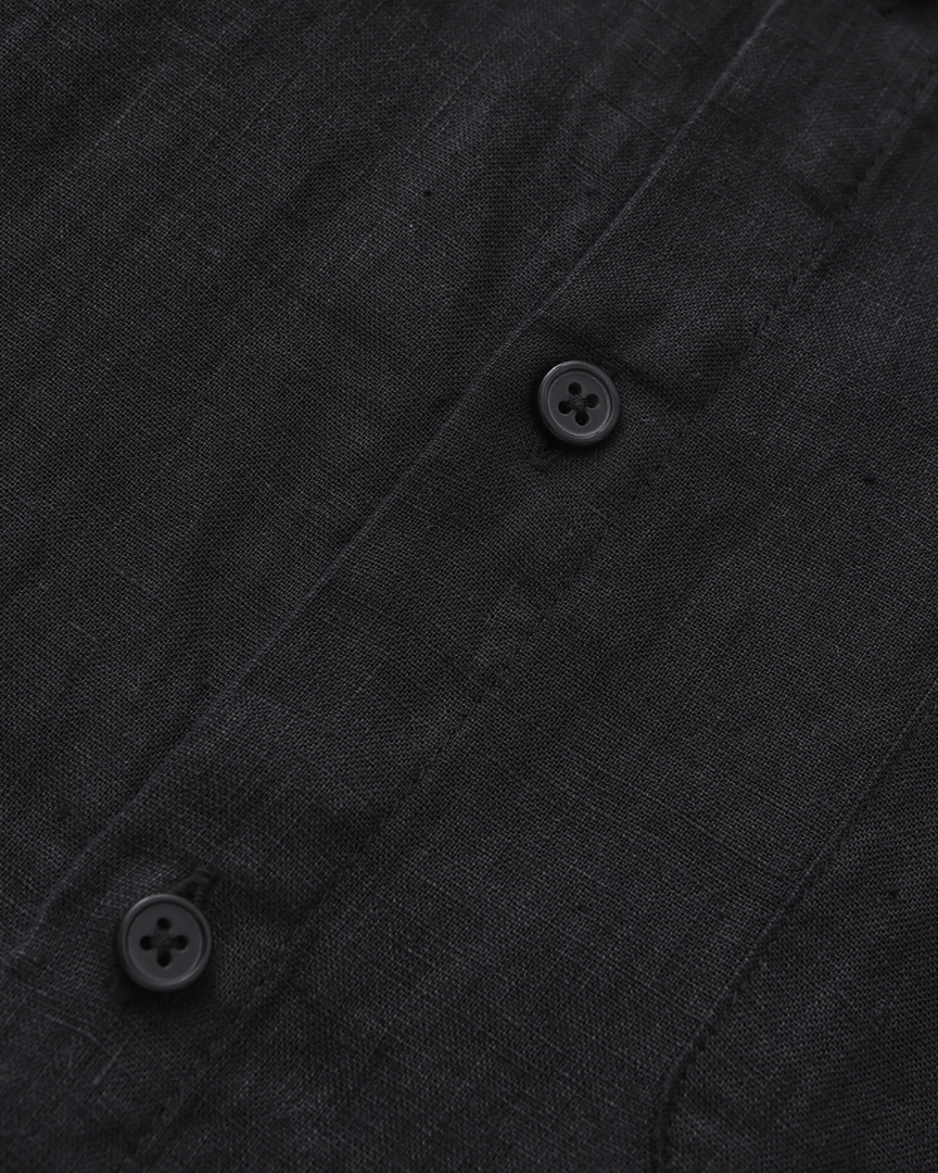 LINEN SHIRT – BLACK: 100% premium linen for breathability, sophistication, and a polished silhouette.