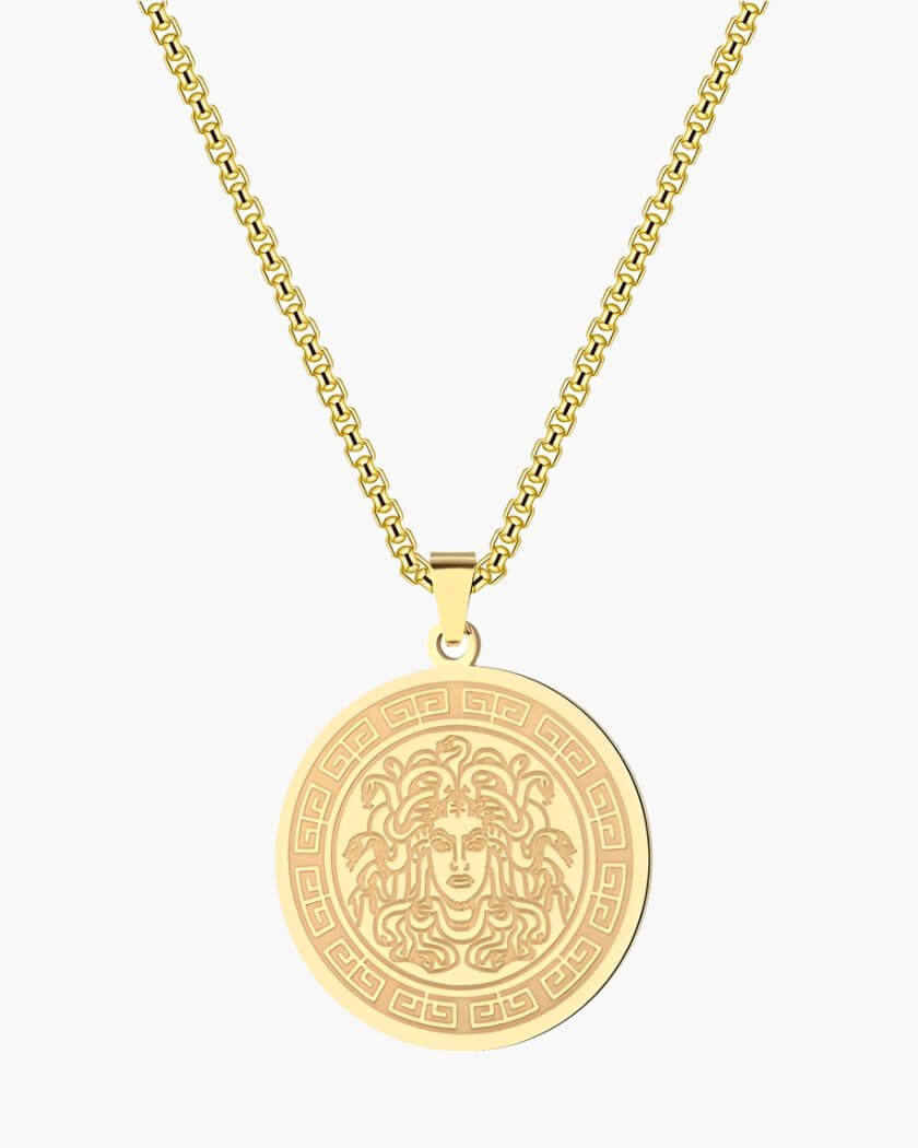 - MEDUSA NECKLACE: A gold-plated emblem of prestige, adding a striking touch of exclusivity.
