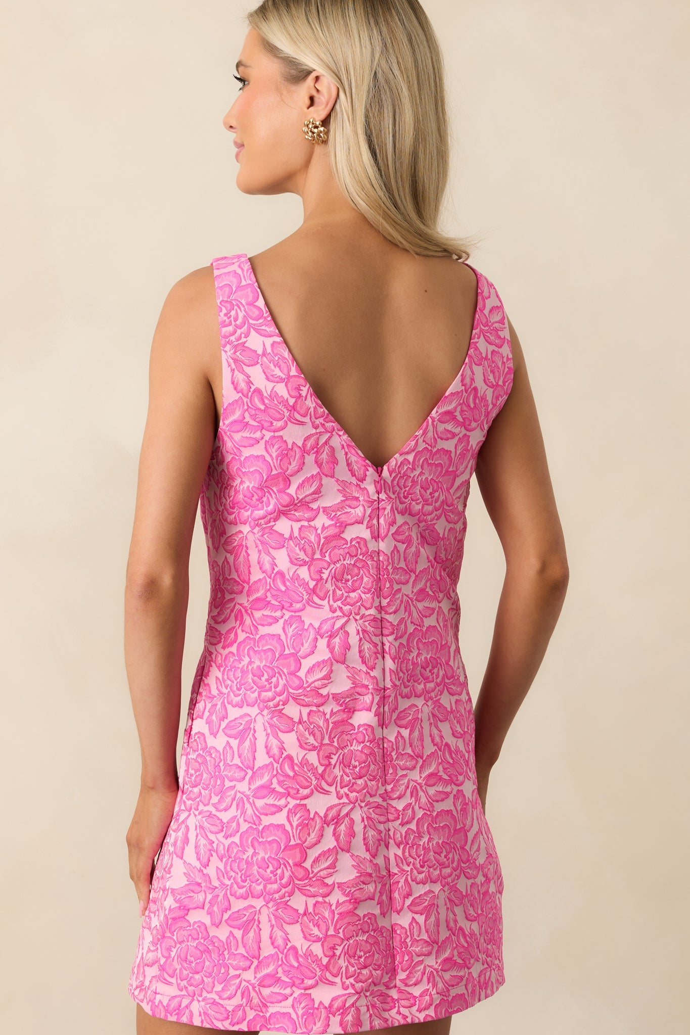 Petals In Paradise Pink Floral Jacquard Mini Dress