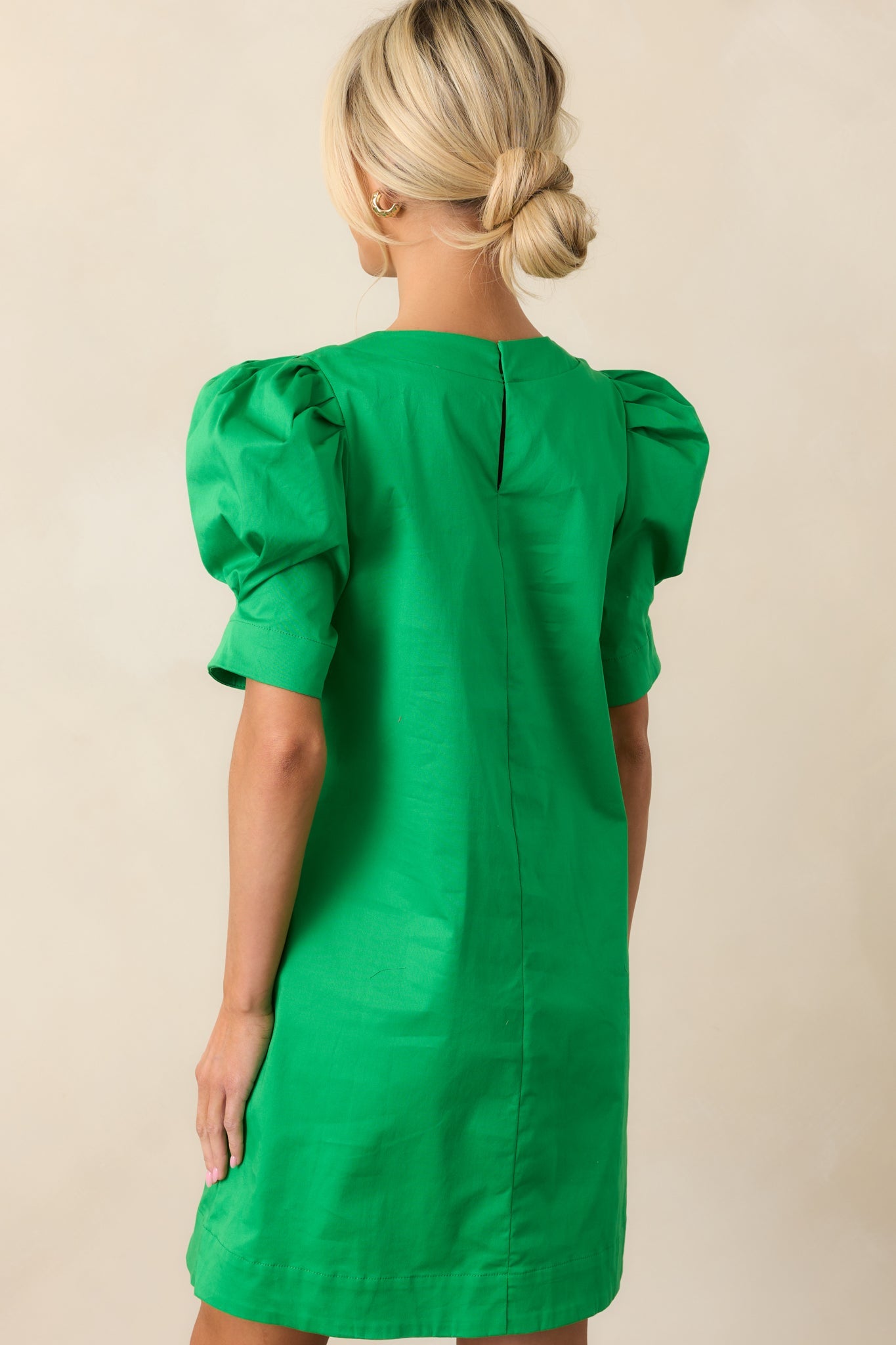 Wine Cellar Tour Cotton Green Puff Sleeve Mini Dress
