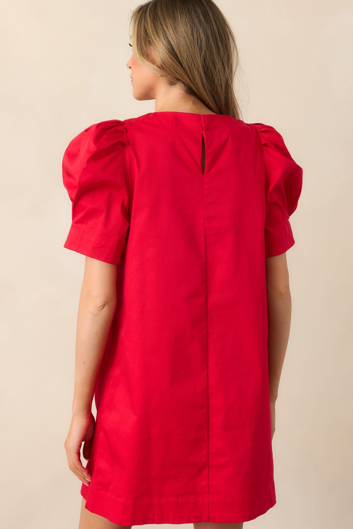 Wine Cellar Tour Cotton Red Puff Sleeve Mini Dress