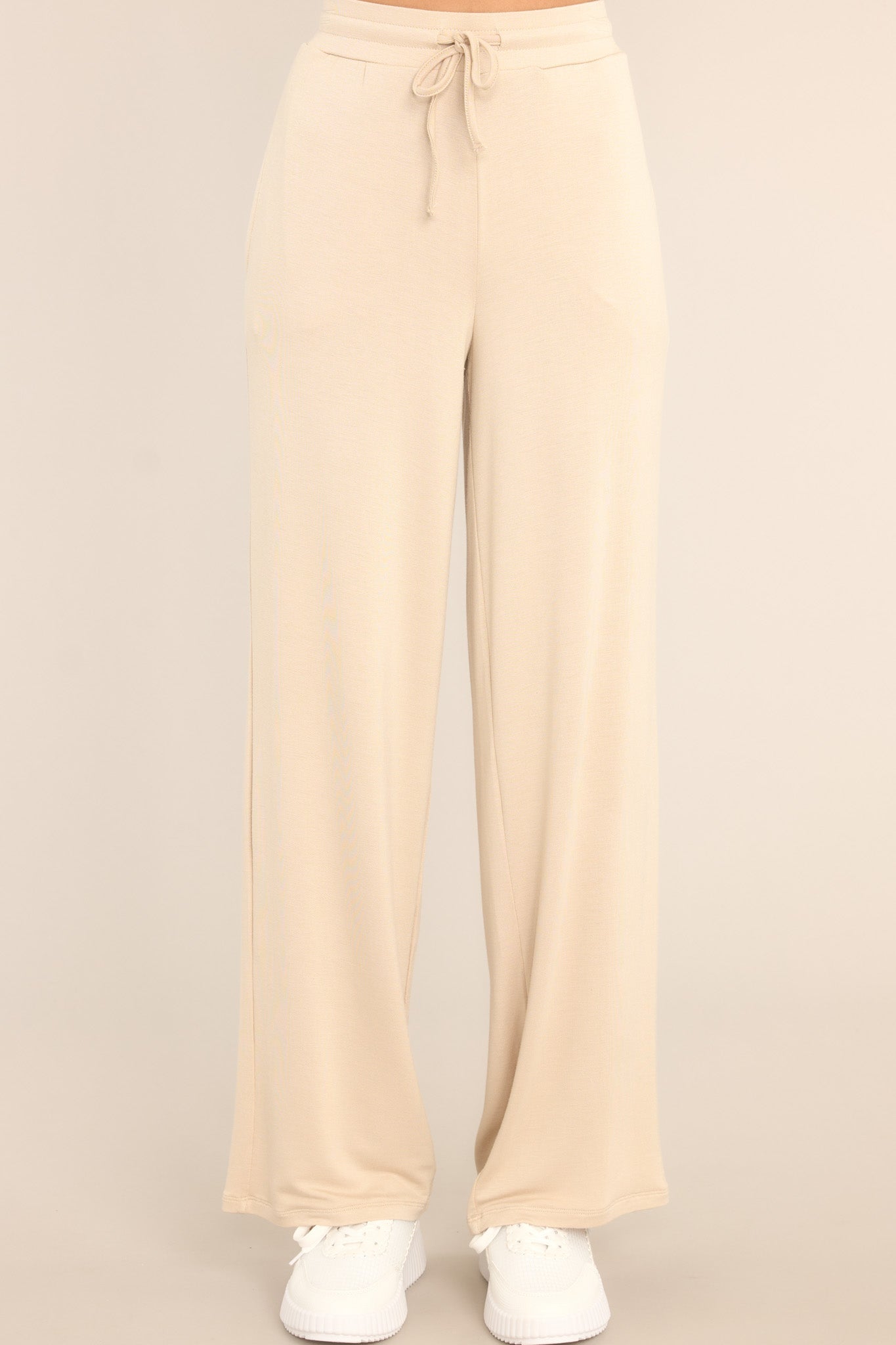 Effortlessly stylish, the With Ease Wide Leg Pants in natural beige offer a comfortable fit for day-to-night wear. Made from soft, breathable fabric, these pants provide ease of movement while adding a touch of sophistication to your outfit. Perfect for any occasion, whether you're running errands or hitting the town. These pants feature a high waisted design, a self-tie drawstring, functional pockets, and a wide leg.