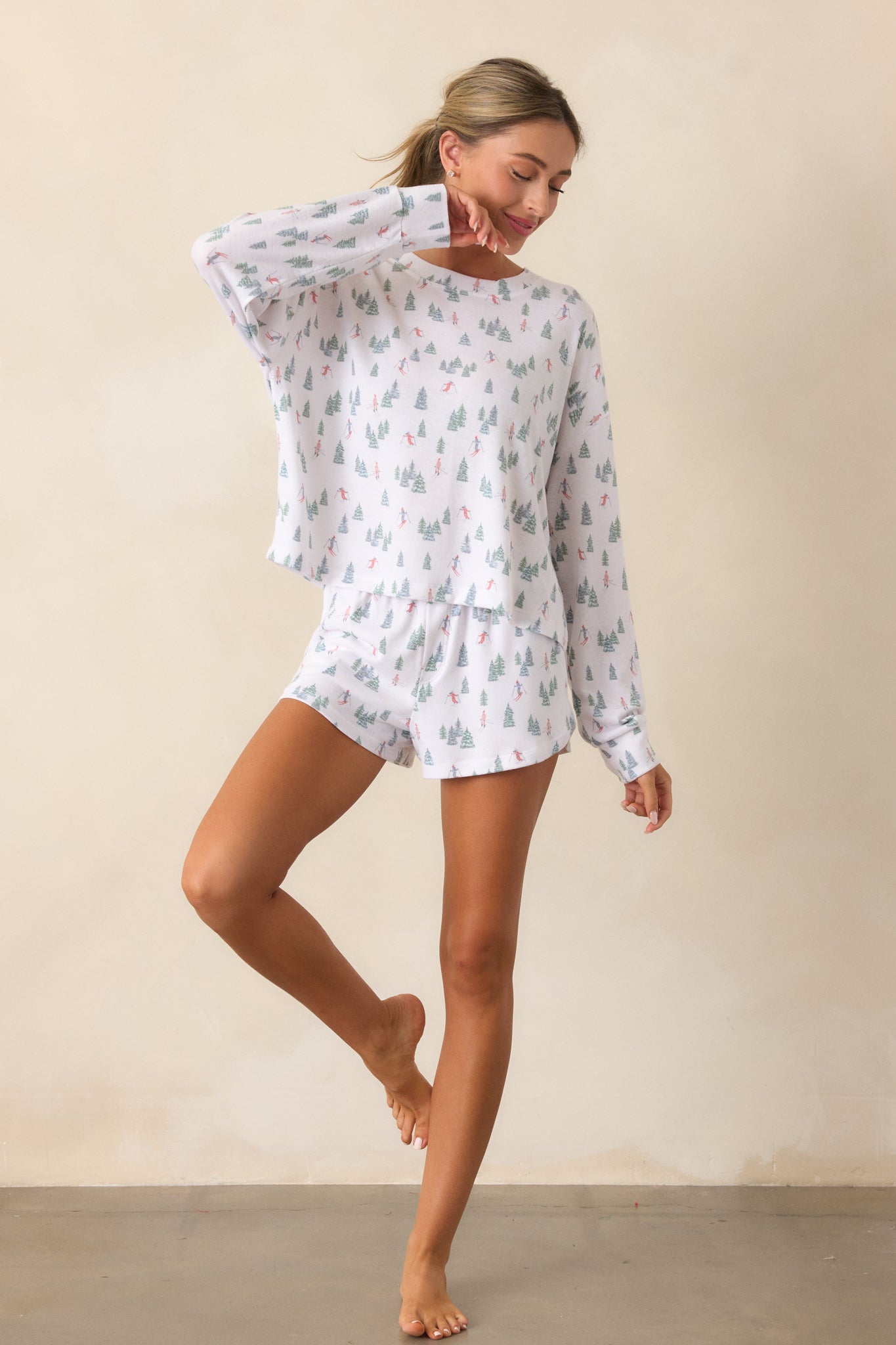 Get ready to hit the slopes in style with our Z Supply Alpine Skier Ivory Brushed Knit Short. Made from soft and cozy brushed knit, these shorts are perfect for staying comfortable after those chilly ski days. The alpine skier design adds a fun touch to these versatile shorts. Stay on-trend and comfortable with Z Supply. These ivory shorts feature a high waist with an elastic waistband, beautiful alpine skier pattern and relaxed fit.
