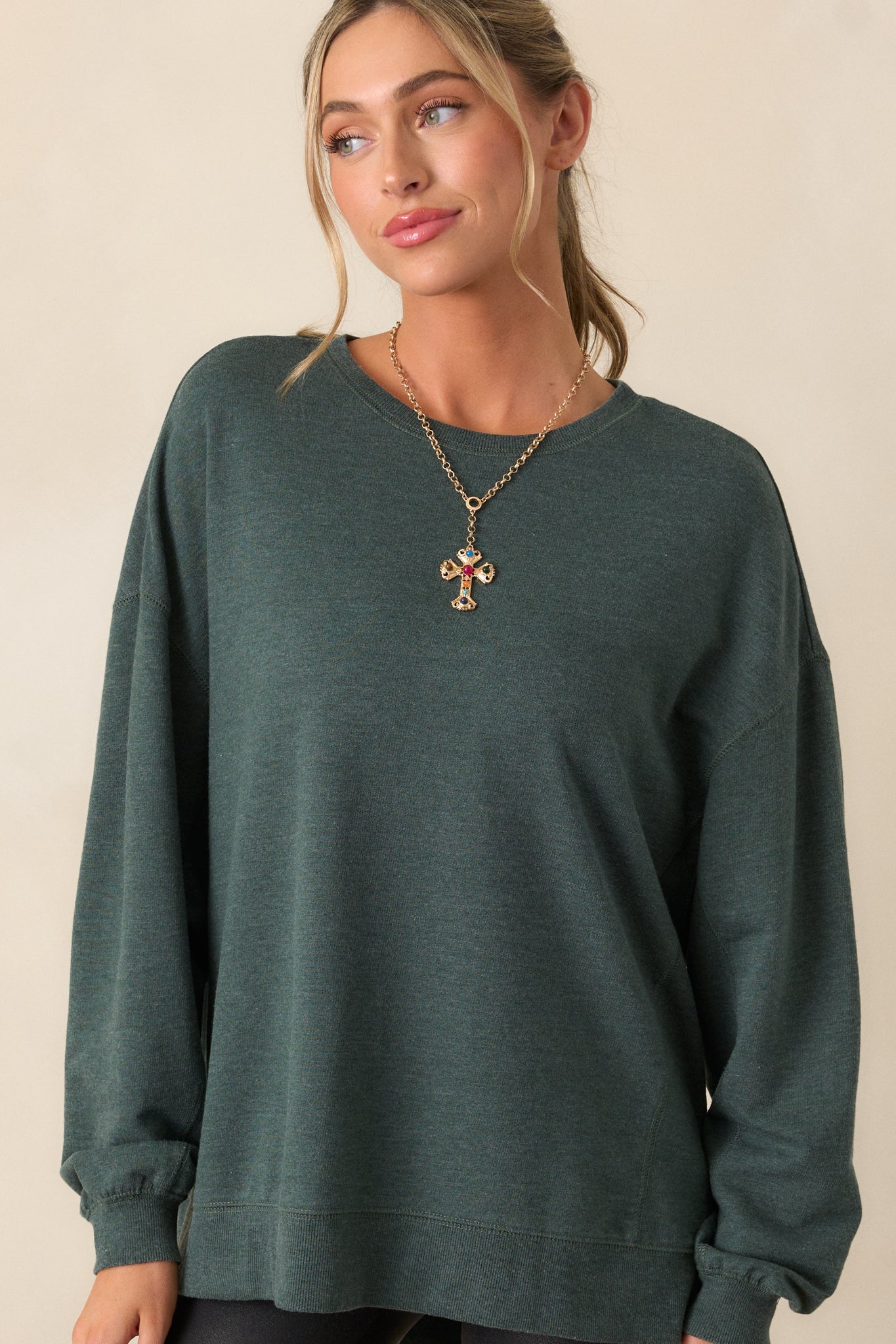 Expand your wardrobe with the Z Supply Forest Green Modern Weekender . Made from comfortable and soft fabric, this top is perfect for any occasion. The forest green color adds a pop of color to your outfit, and the crew neck design offers a classic and versatile look. Stay cozy and stylish with this must-have top. This forest green top features a crew neckline, oversized fit, split bottom hem, french terry fabric and long sleeves.