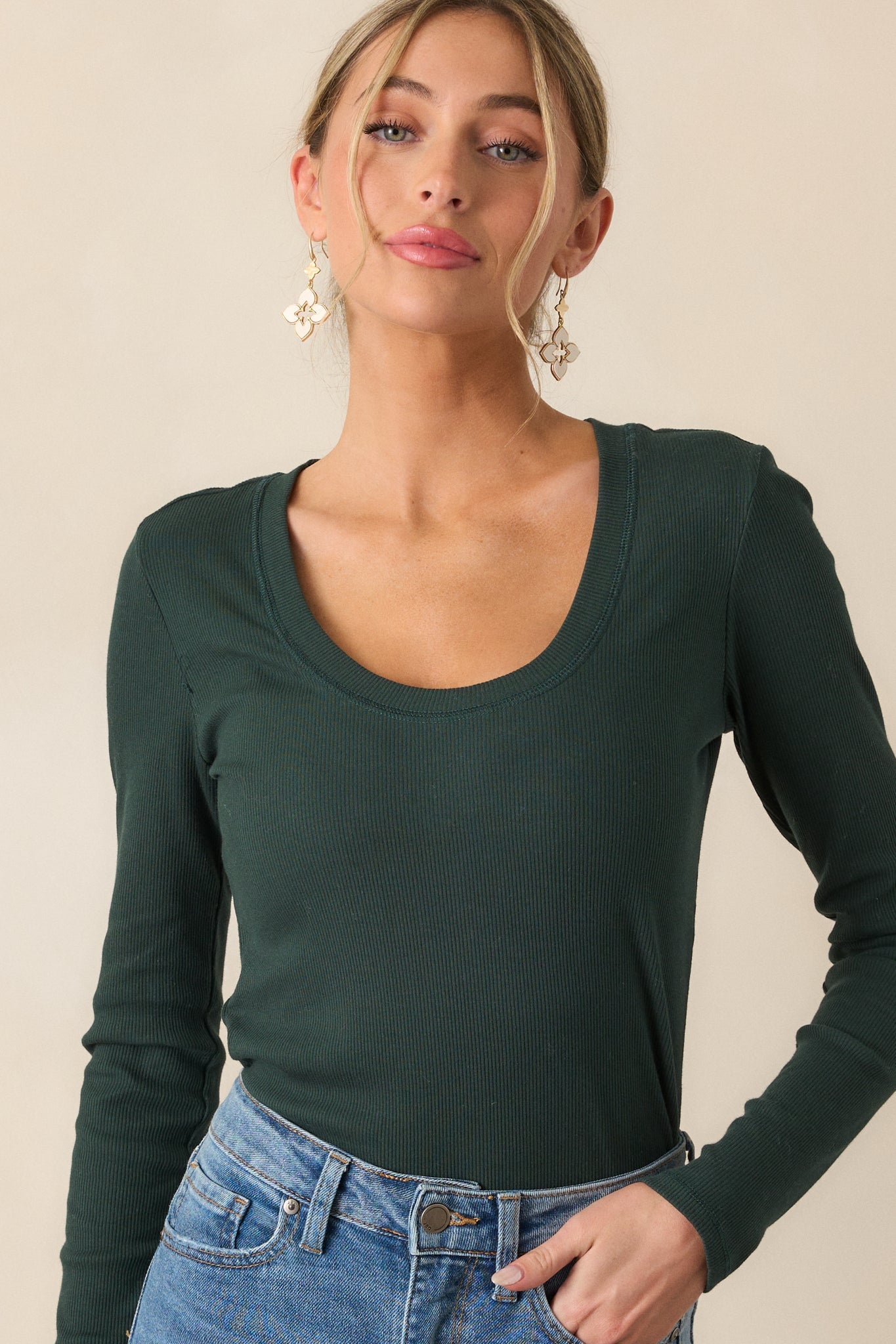 Get ready for a splash of style with Z Supply's Sirena Rib Cyprus Green Long Sleeve Top. Made for the fashion-forward, this top features a unique ribbed texture and a bold pop of color that will turn heads. Perfect for any occasion, you'll feel confident and trendy in this fun and playful top. This green top features a scoop neckline, ribbed detailing, and long sleeves.