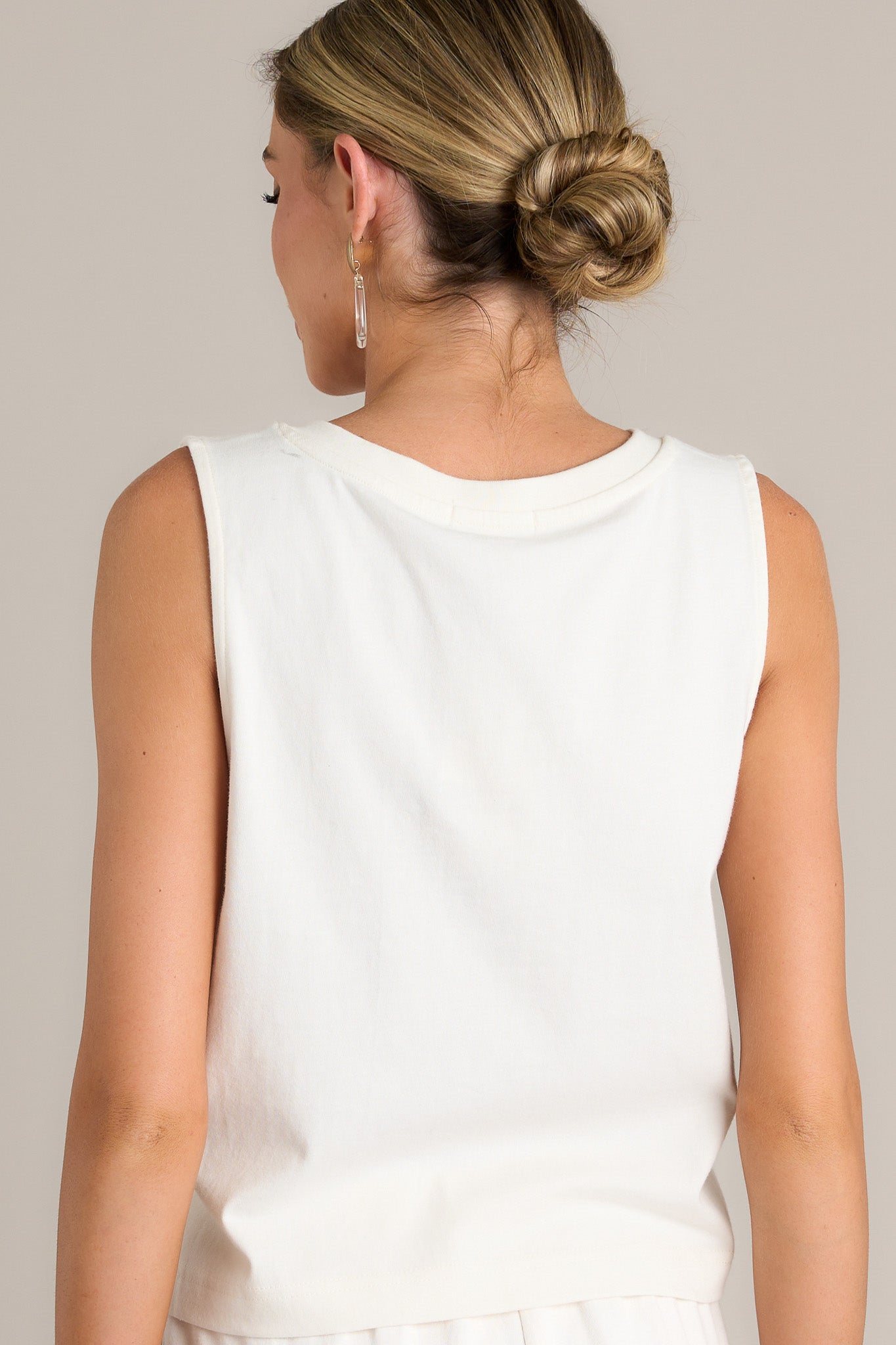 Infuse your summer wardrobe with some laid-back charm with the Z Supply Sloane V-Neck Sea Salt Tank. Crafted from 100% cotton, this tank features a playful neckline and a refreshing sea salt color. Perfect for any casual occasion, stay cool and stylish all season long with this comfortable tank. This white tank features a v-neckline, a sleeveless design, and a slightly cropped hemline.